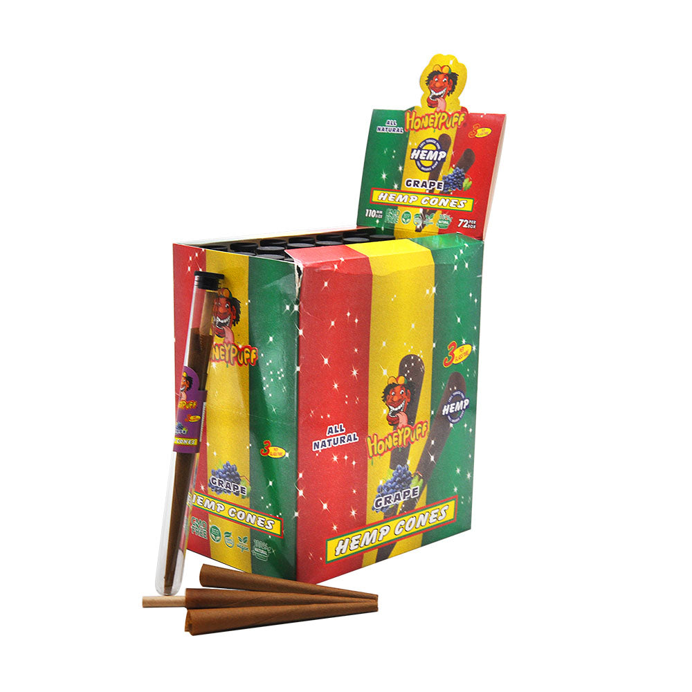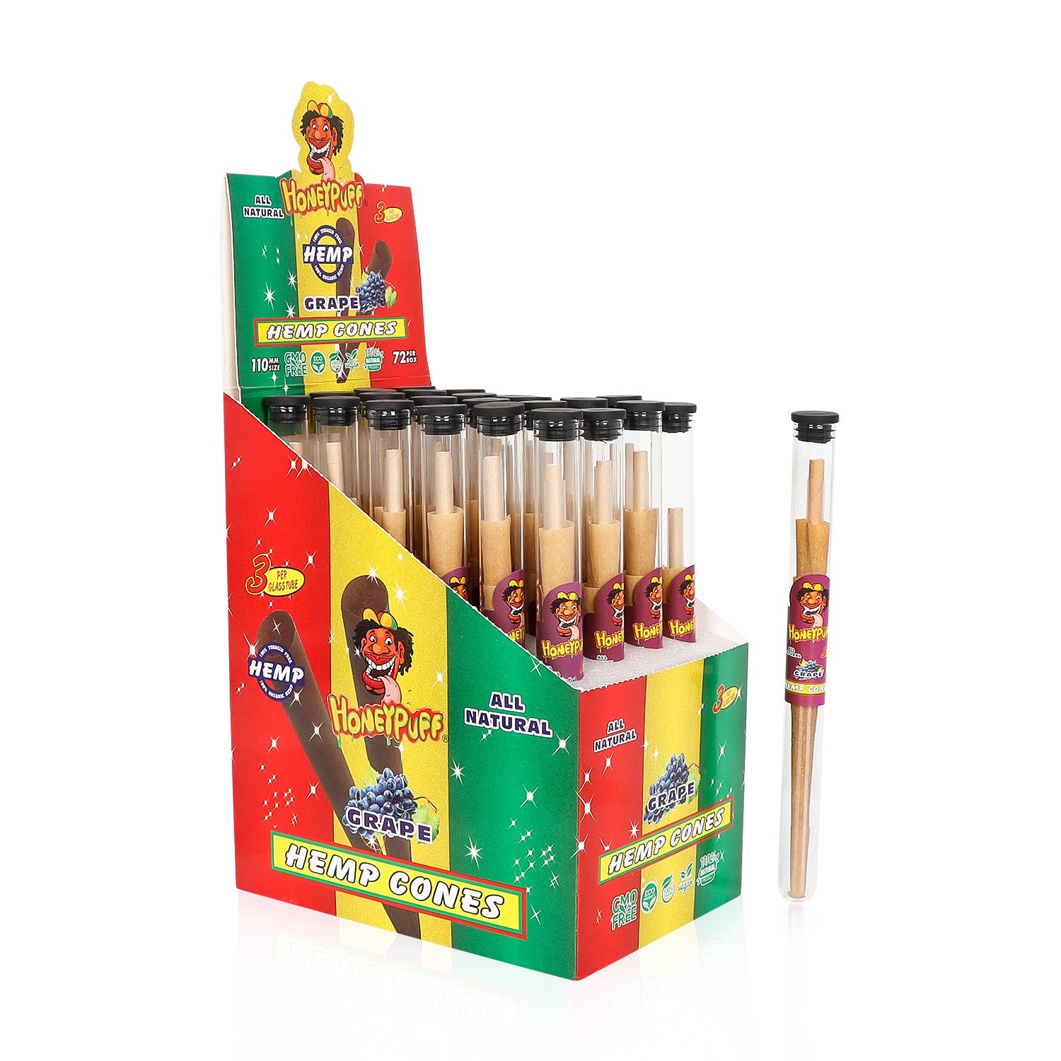 HONEYPUFF Grape Flavors Pre Rolled Cones with Tips, King Size Pre Rolled Rolling Paper, Natural Rolling Papers & Glass Cigarette Holder, 3Cone/Tube 24Tubes/Box