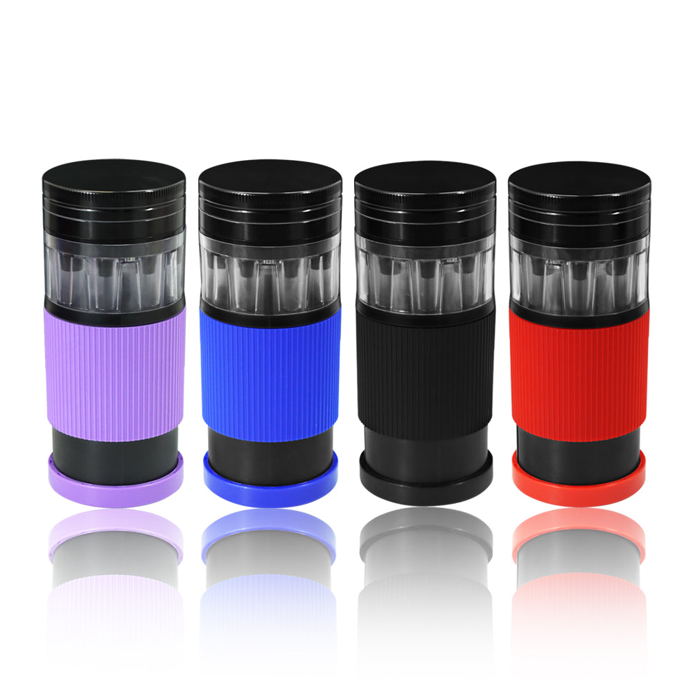 - This special herb grinder look likes thermos shape, have a good catching feel, the middle plastic part equipped non-slip lines. So don’t worry it will smash form your hand.