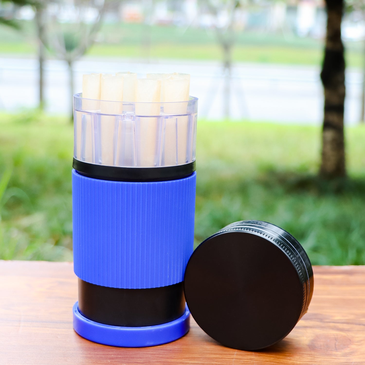 - If you want to know the pre rolled rolling paper whether or not be filled, the herb grinder middle position have a transparent plastic window that can watch clearly the pre rolled cones top.