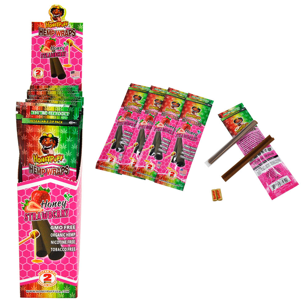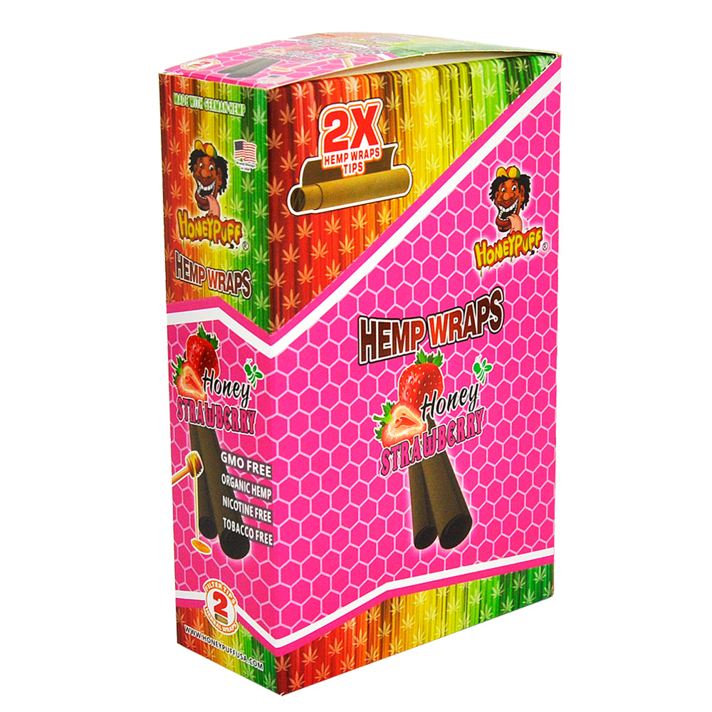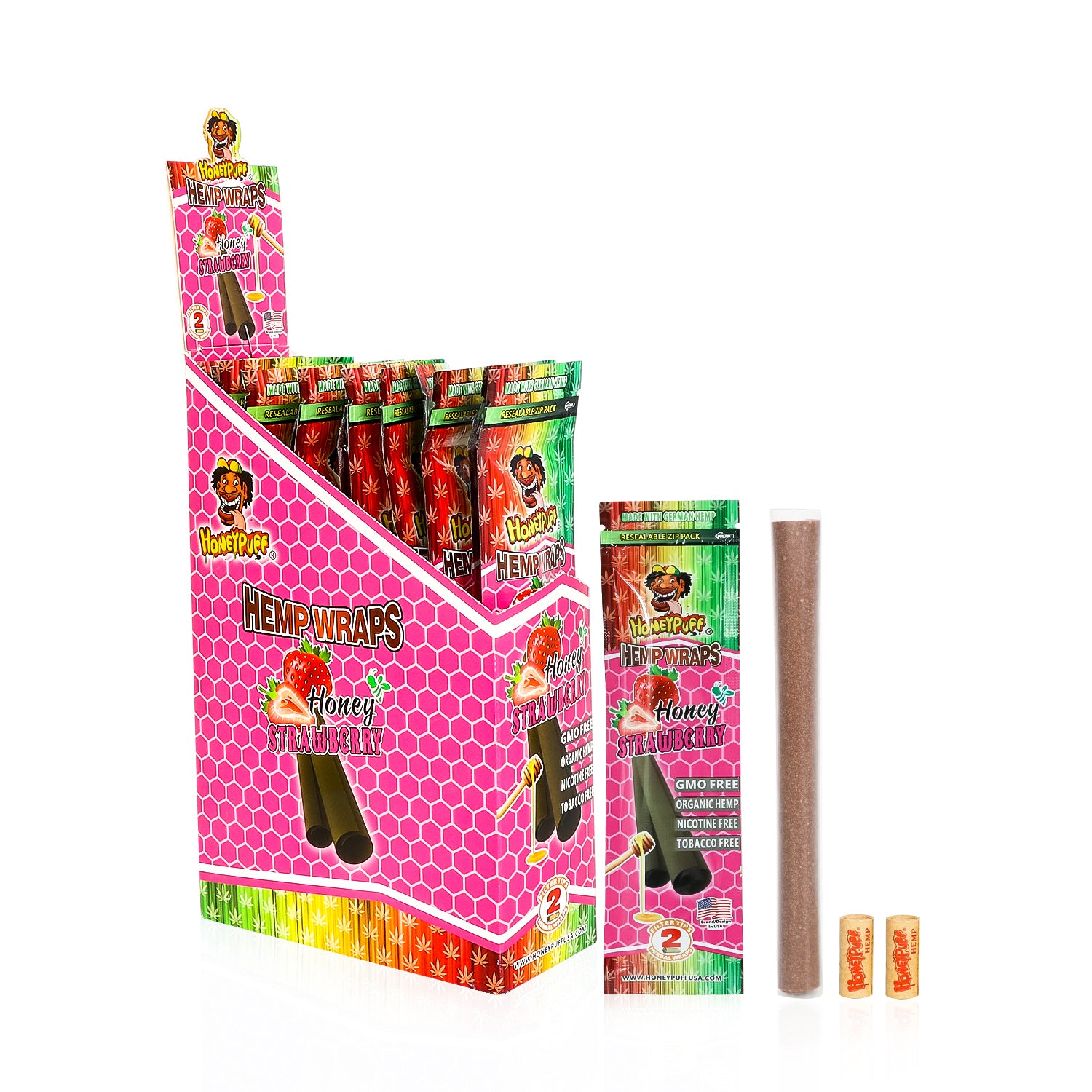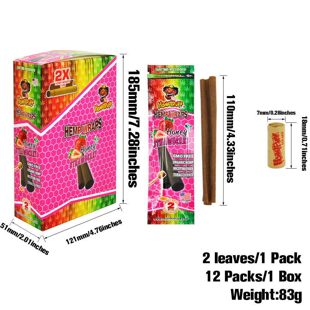HONEYPUFF Strawberry Flavored Pre Rolled Cones with Two Pre Rolled Tips, King Size Rolling Cones, Slow Burning Pre Rolled Rolling Papers, 2 Pcs / Pack 12 Packs/Box