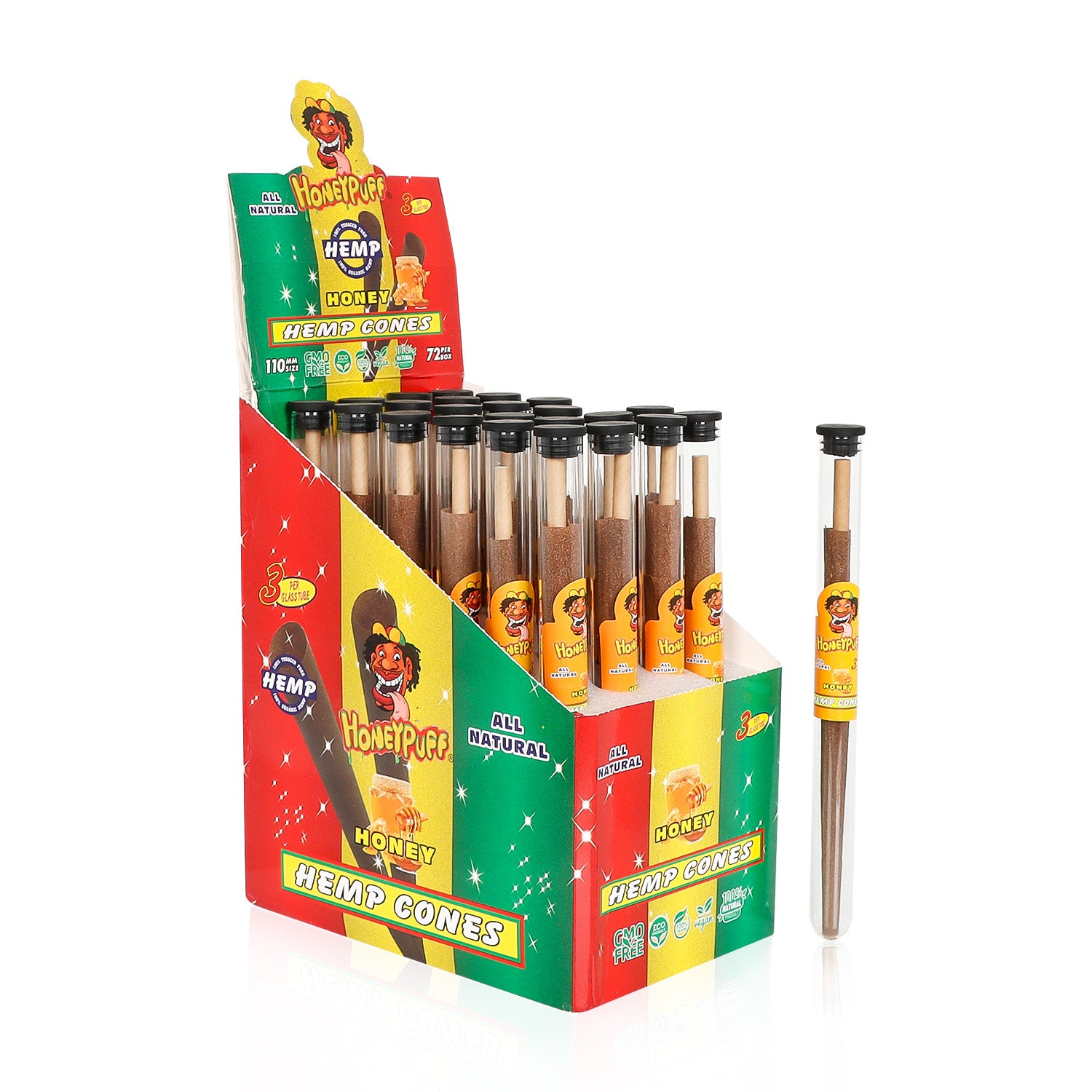 HONEYPUFF Honey Flavors Pre Rolled Cones with Tips, King Size Pre Rolled Rolling Paper, Natural Rolling Papers & Glass Cigarette Holder, 3Cone/Tube 24Tubes/Box