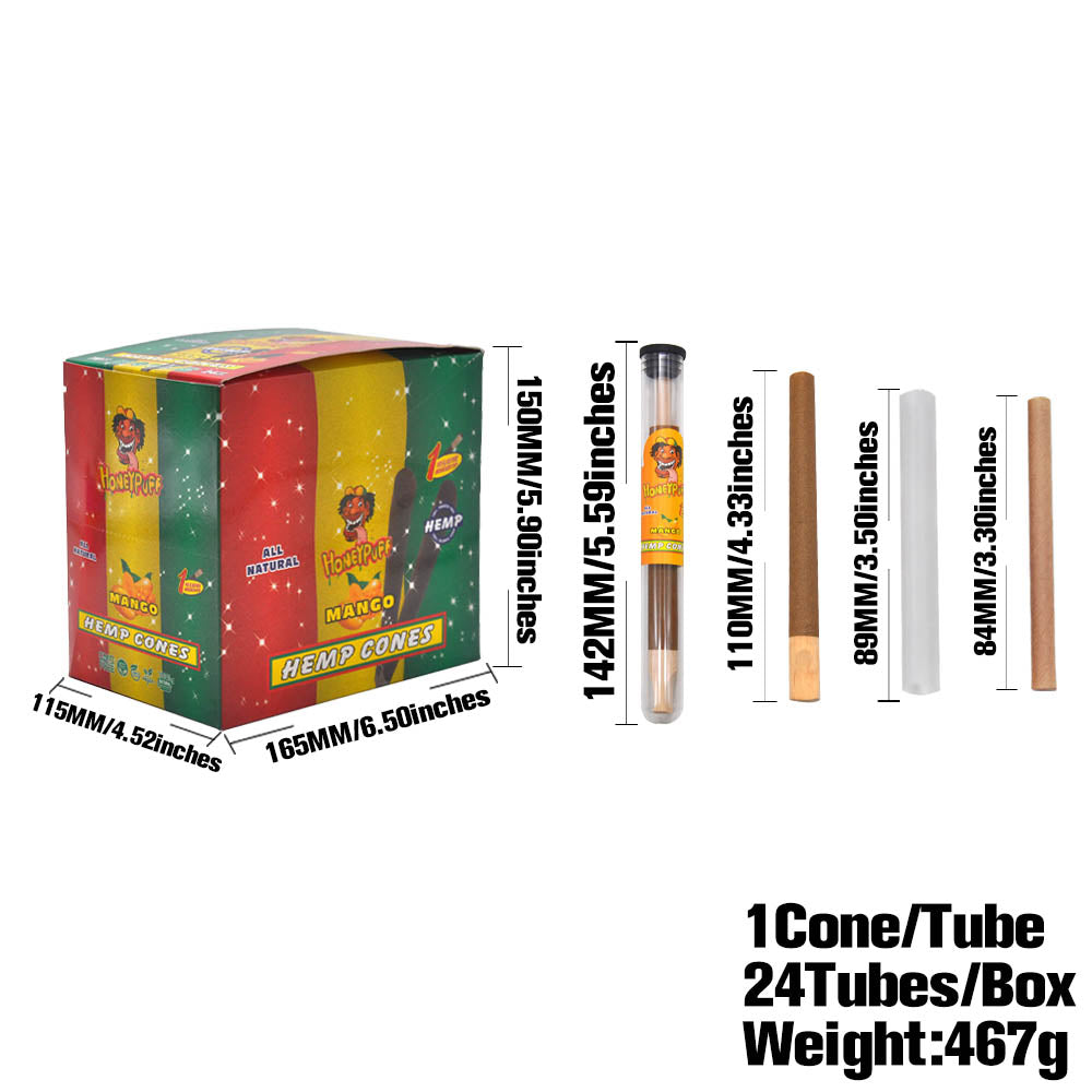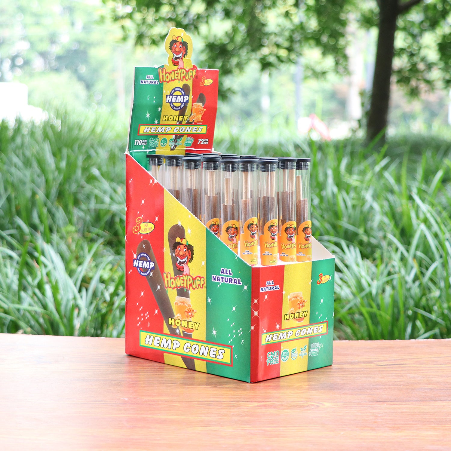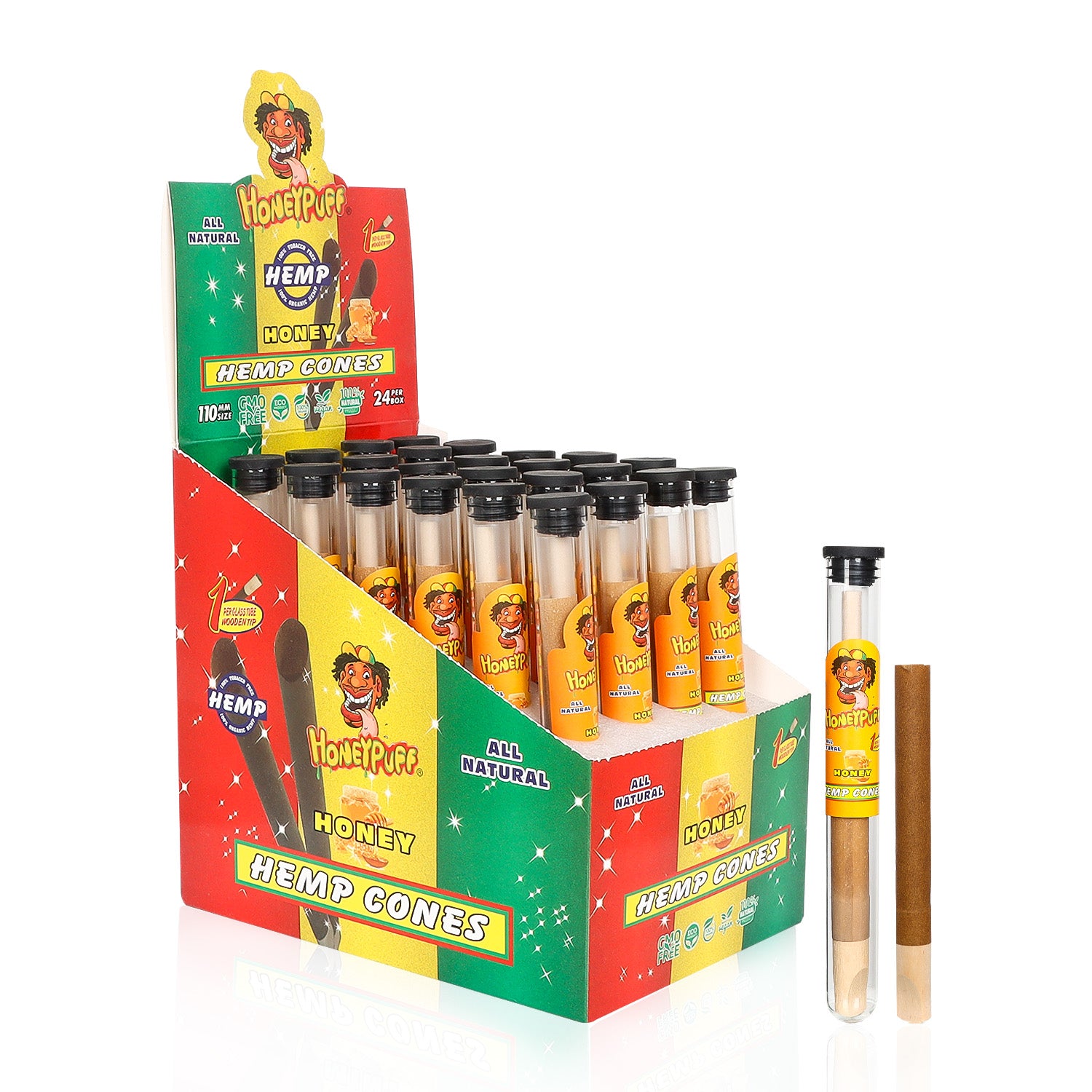 HONEYPUFF Honey Flavors Pre Rolled Cones with Wood Tips, King Size Rolling Paper & Glass Cigarette Holder, Slow Burning Rolling Cones, 1 PCS/ Tube 24 Tubes/Box