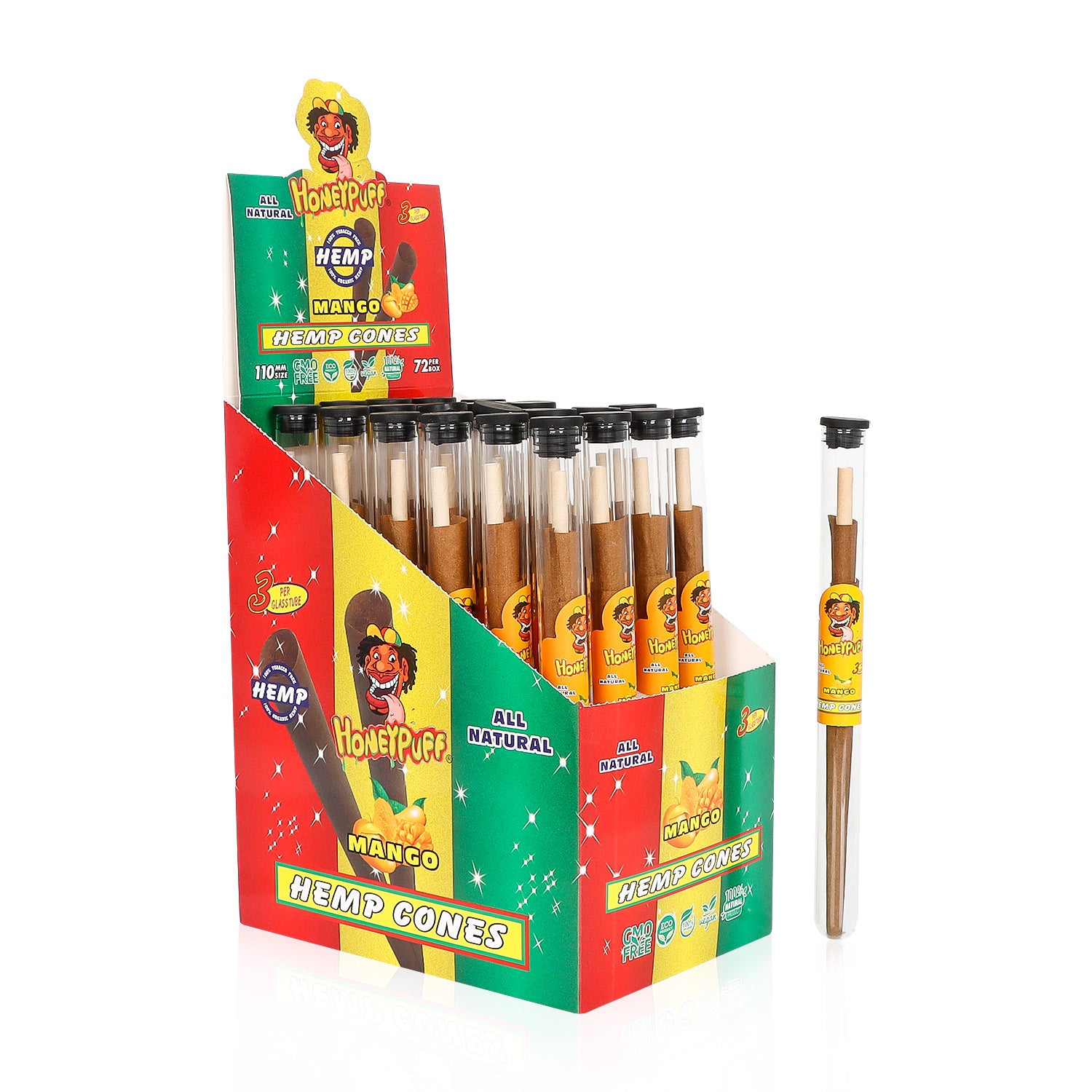 HONEYPUFF Mango Flavors Pre Rolled Cones with Tips, King Size Pre Rolled Rolling Paper, Natural Rolling Papers & Glass Cigarette Holder, 3Cone/Tube 24Tubes/Box