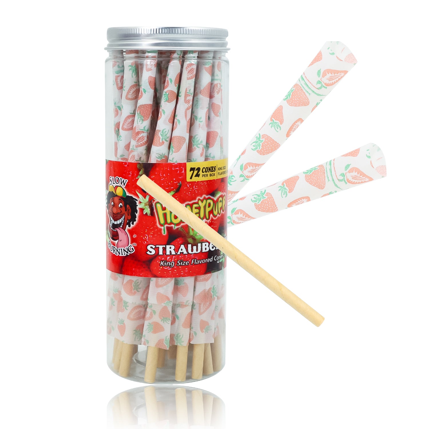 HONEYPUFF Strawberry Flavor Pre Rolled Cones, King Size Pre Rolled Rolling Paper with Tips, Slow Burning Papers (72 PCS)