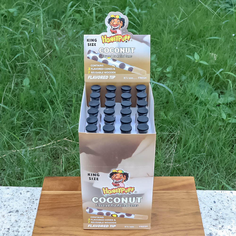 HONEYPUFF Coconut Flavors Pre Rolled Cones With Wood Tips, King Size Rolling Paper & Glass Cigarette Holder Slow Burning Rolling Cones