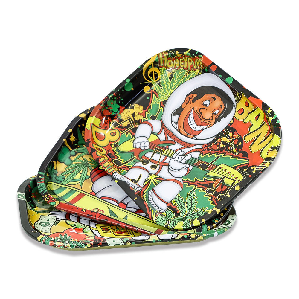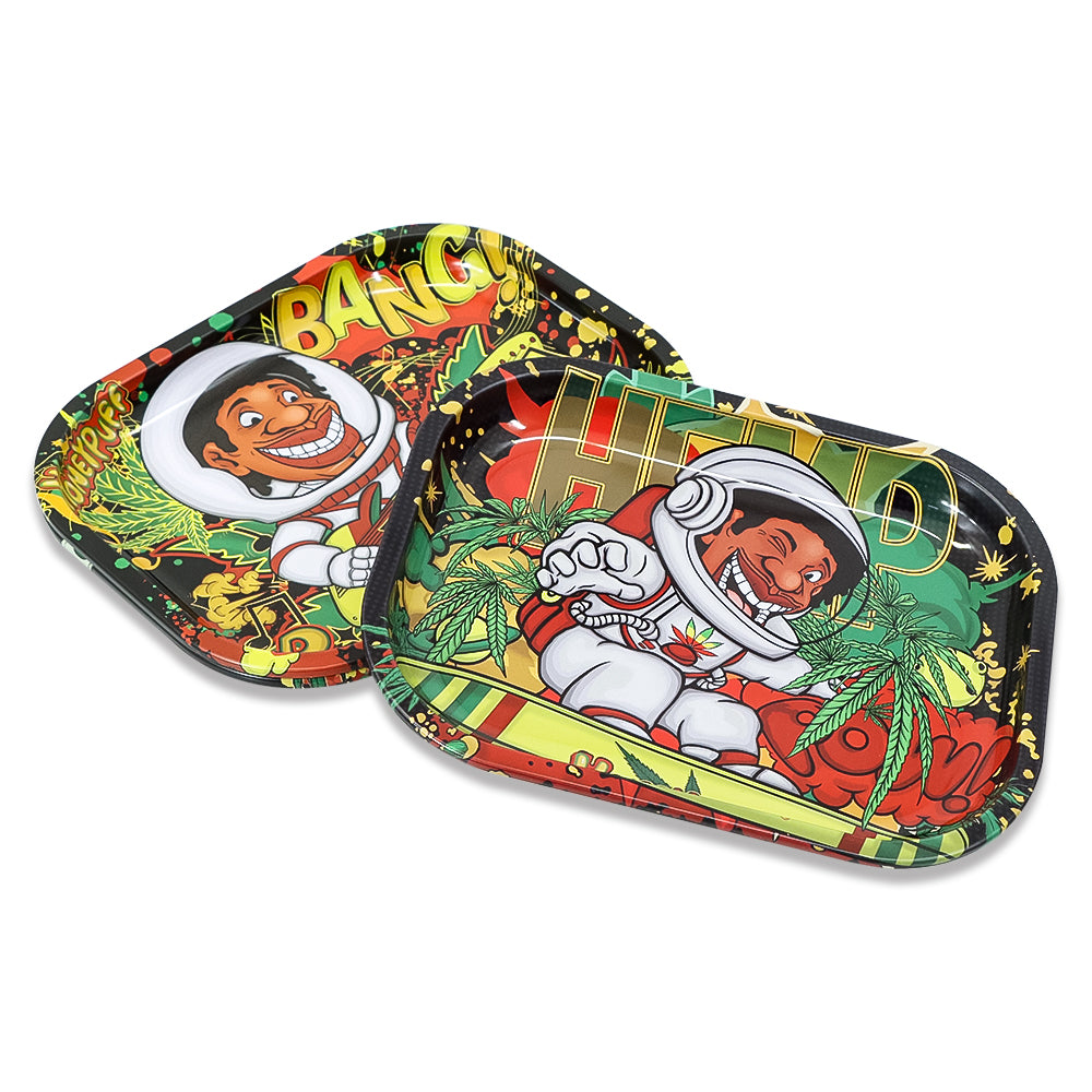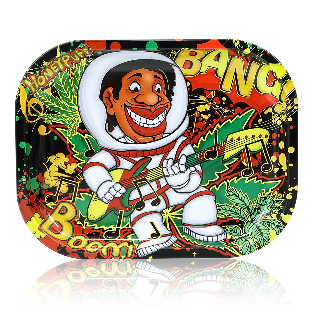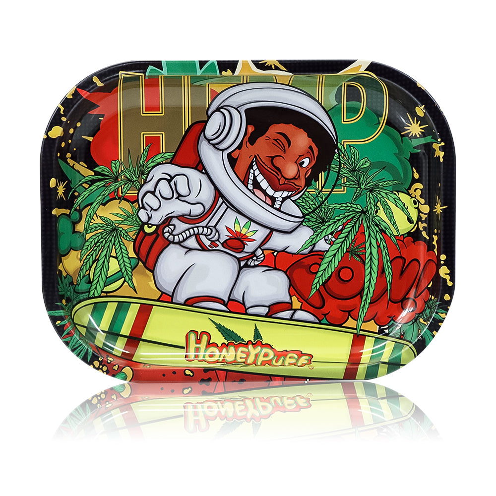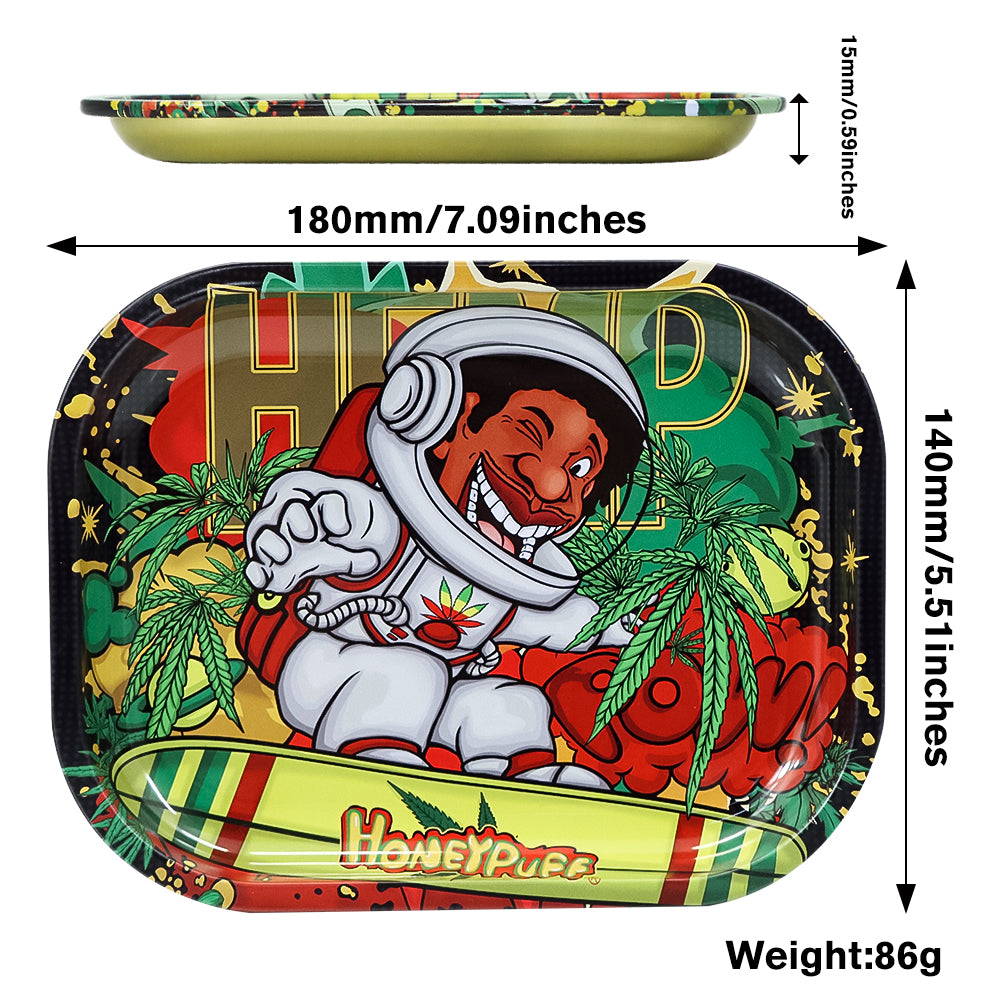 HONEYPUFF Multi Color Tinplate Metal Rolling Tray, 180*140 Size Portable Cigarette Rolling Paper Tray, Smooth Rounded Edge Rolling Paper Tray