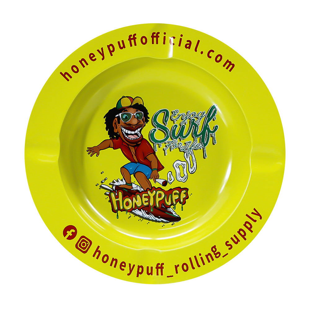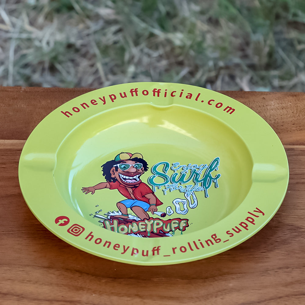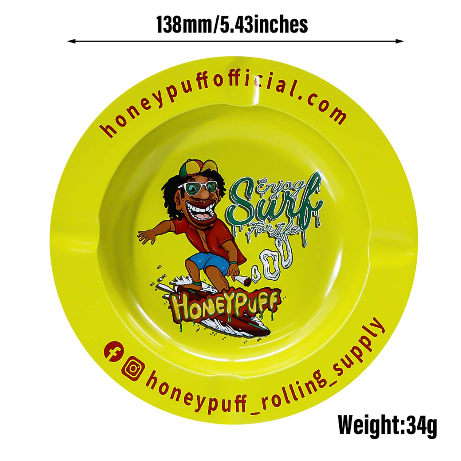 - [Easy clean]: The HoneyPuff tinpalte ashtray have a smooth rounded edge that will no hurt people. This metal ash tray allows it to cleaned in the dishwasher, whether by hand or machine wash is only a small amount of soap and water can be easily washed off. Rinse under the tap, and dry it with a cloth.