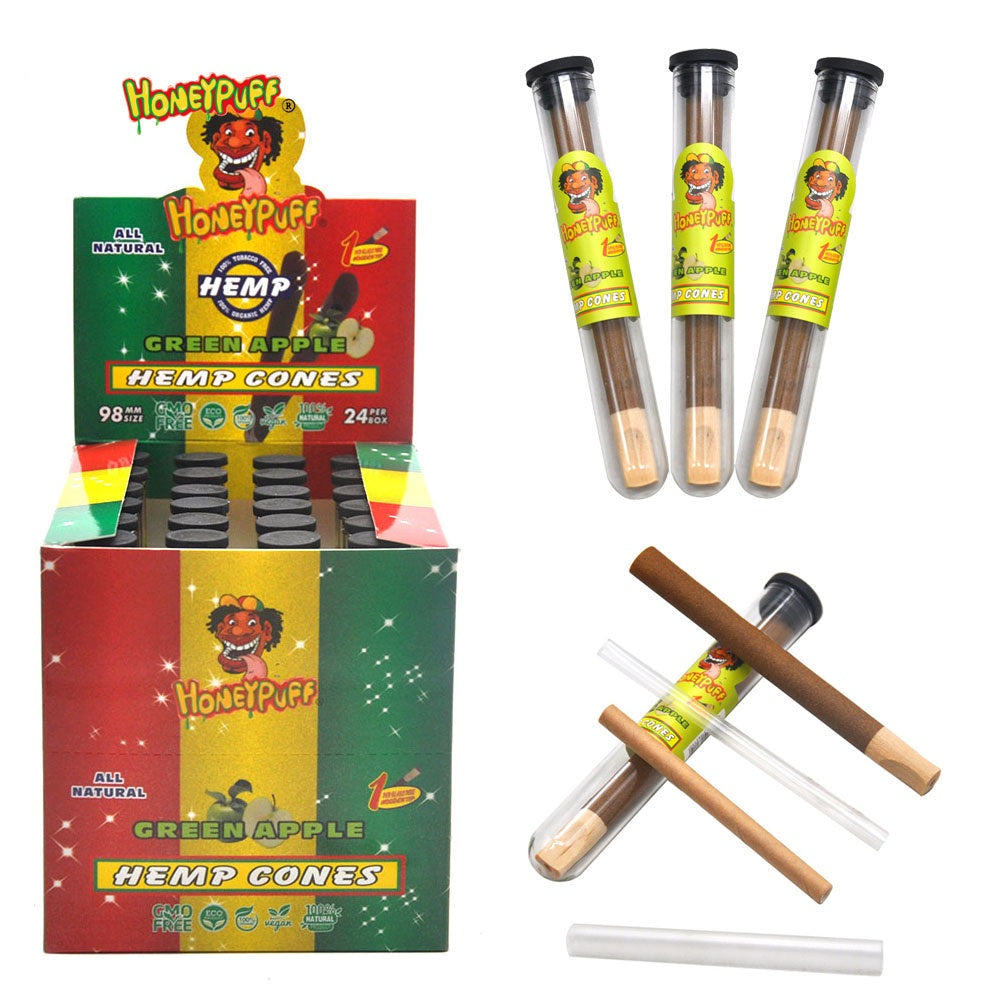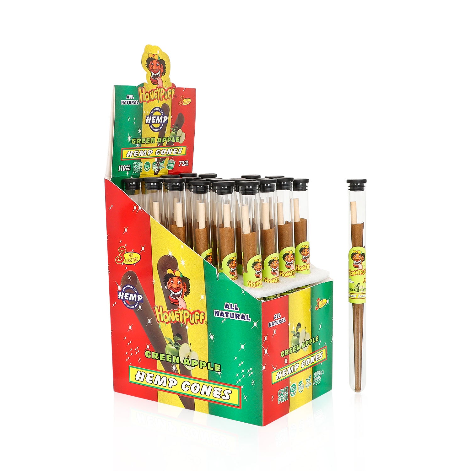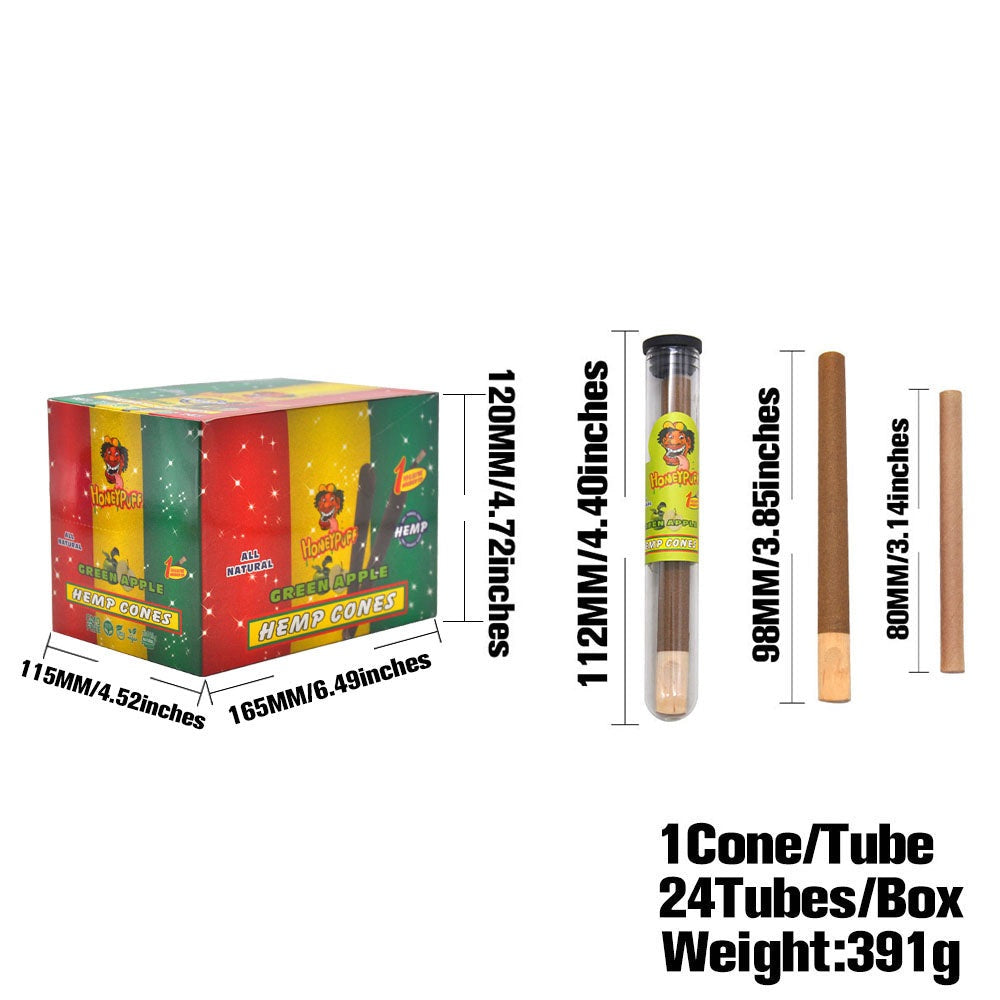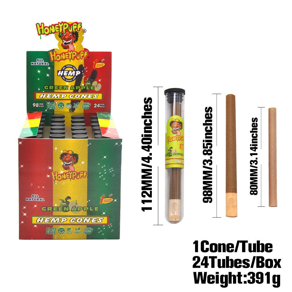 HONEYPUFF Green Apple Flavors Pre Rolled Cones with Wood Tips, King Size Rolling Paper & Glass Cigarette Holder, Slow Burning Rolling Cones, 1 PCS/ Tube 24 Tubes/Box