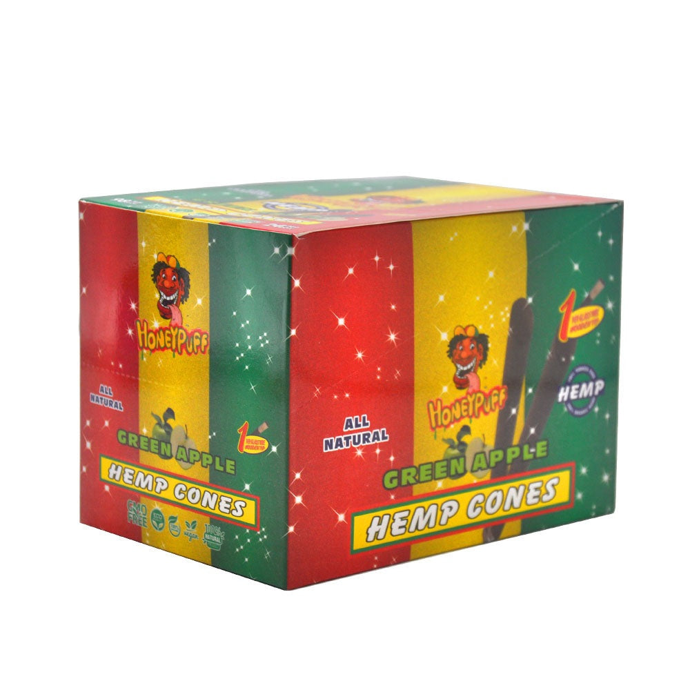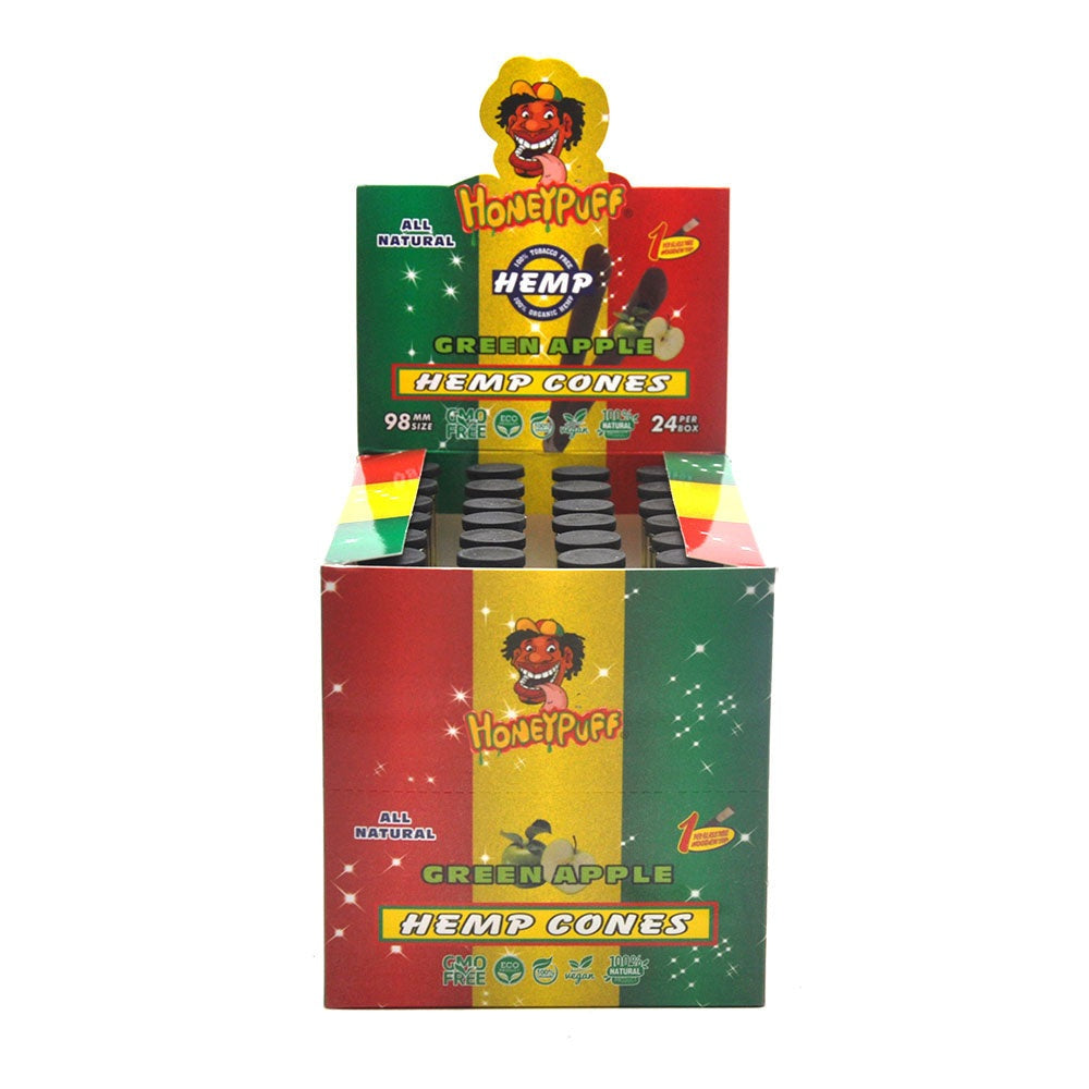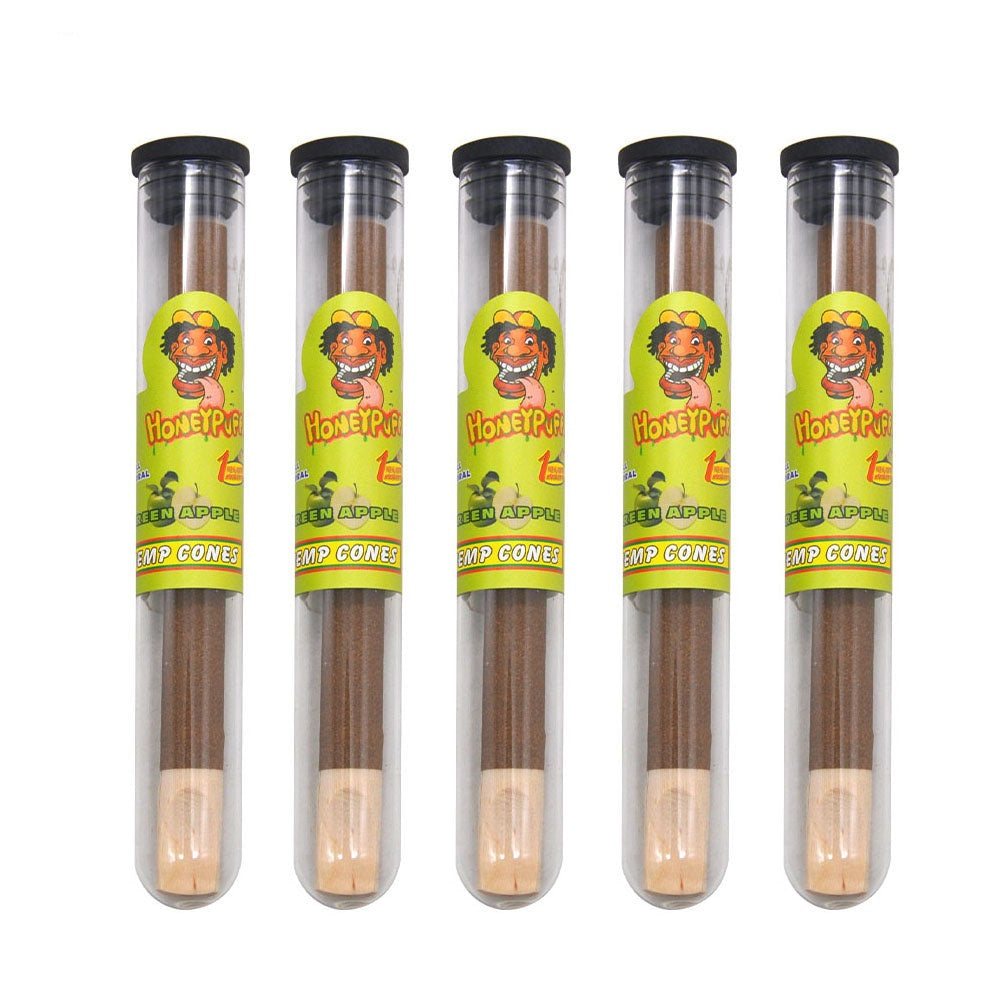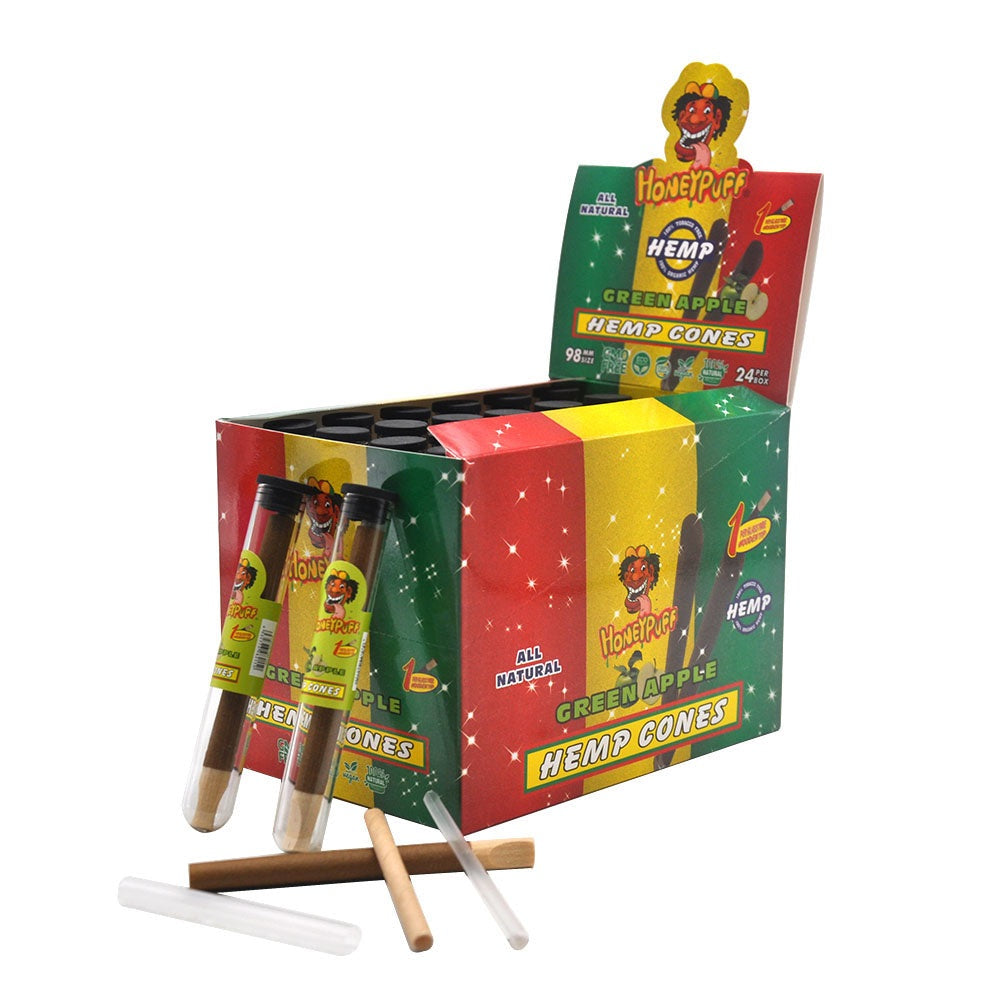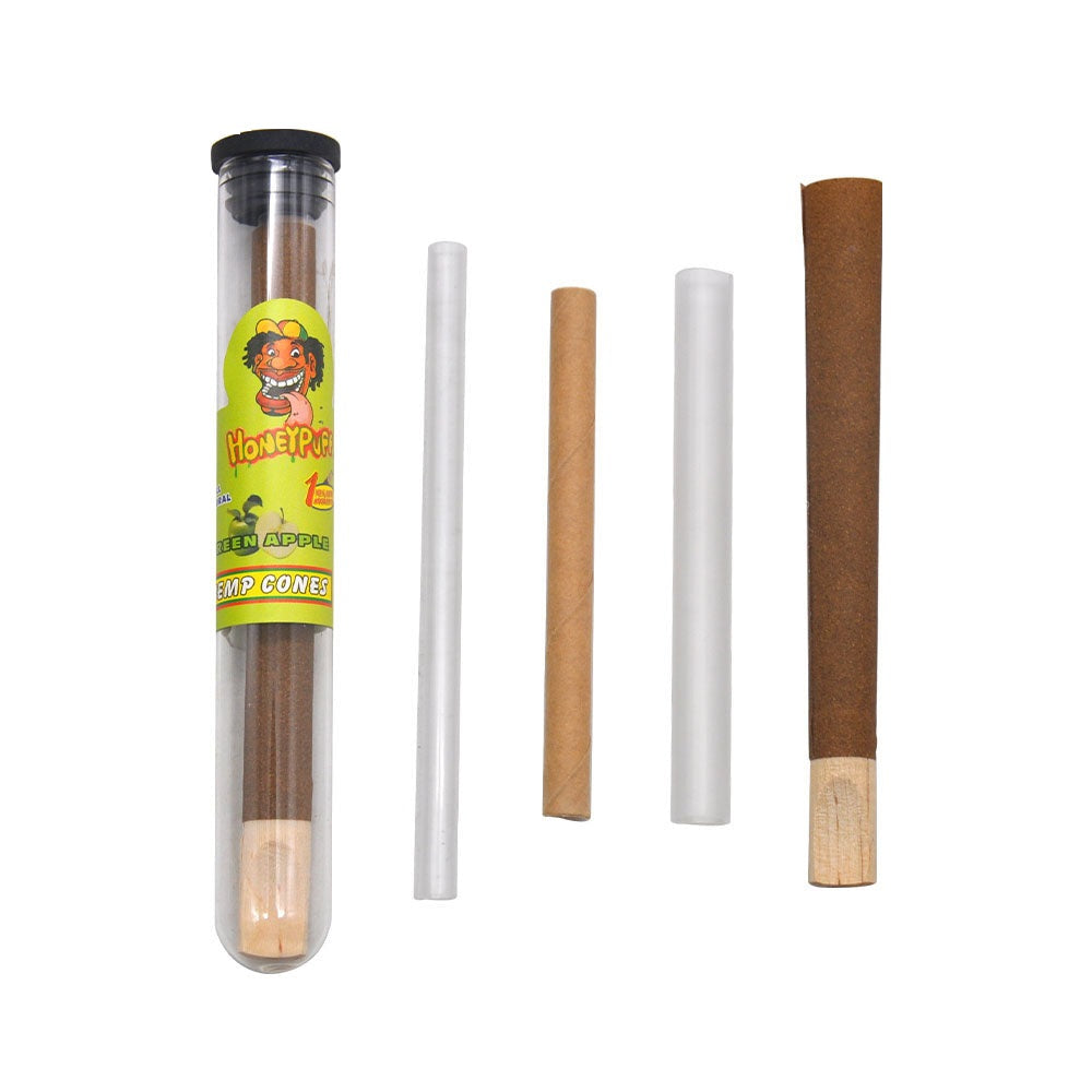HONEYPUFF Green Apple Flavors Pre Rolled Cones with Wood Tips, King Size Rolling Paper & Glass Cigarette Holder, Slow Burning Rolling Cones, 1 PCS/ Tube 24 Tubes/Box