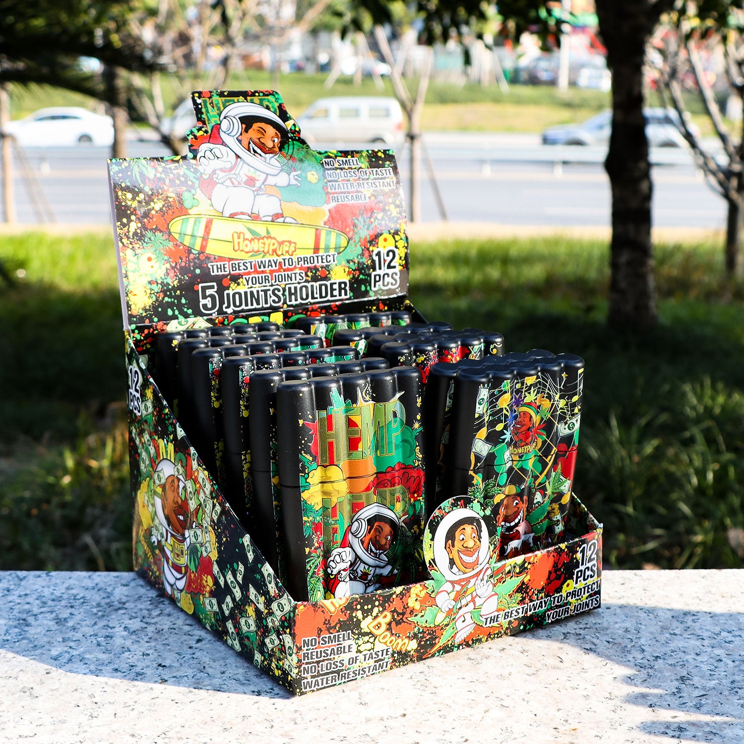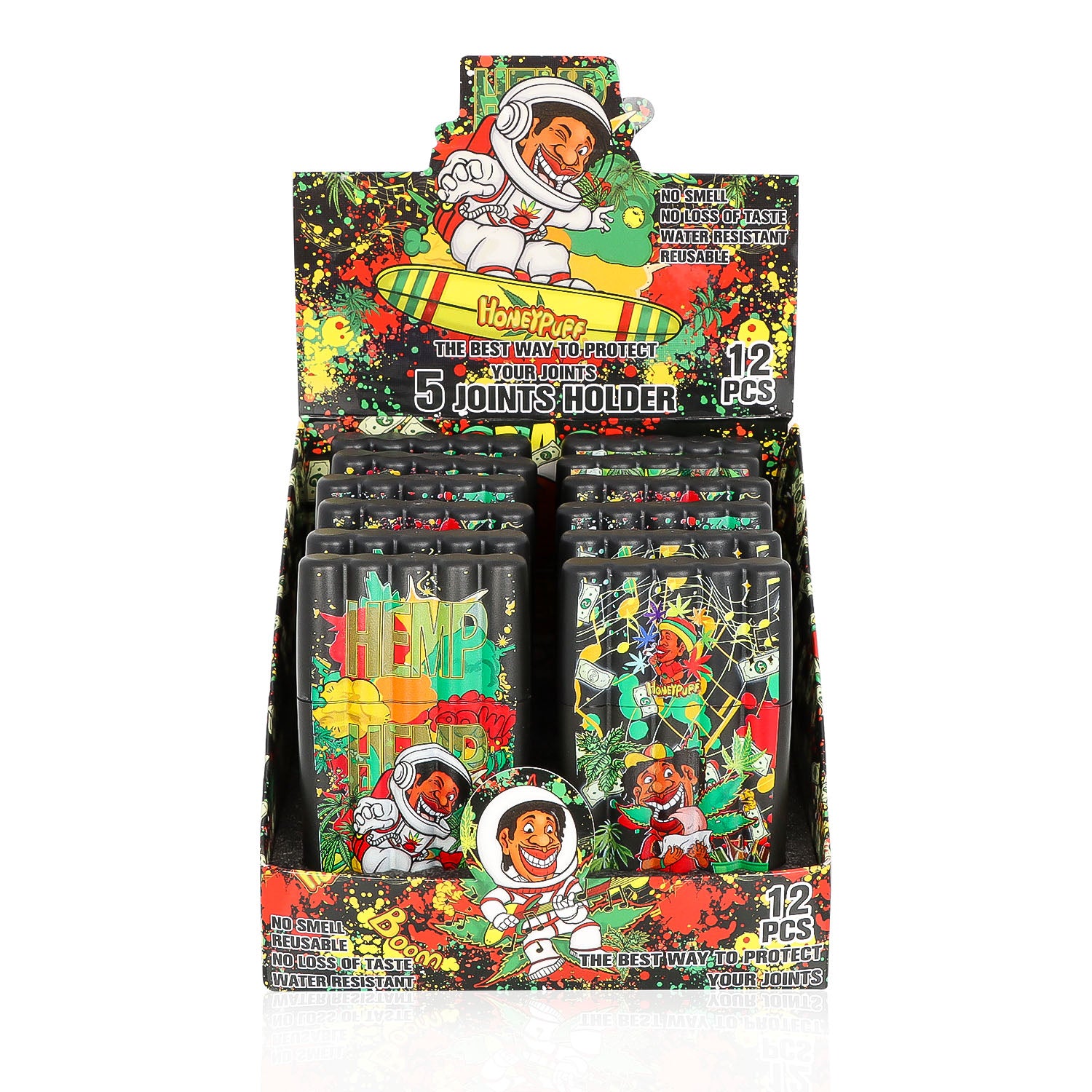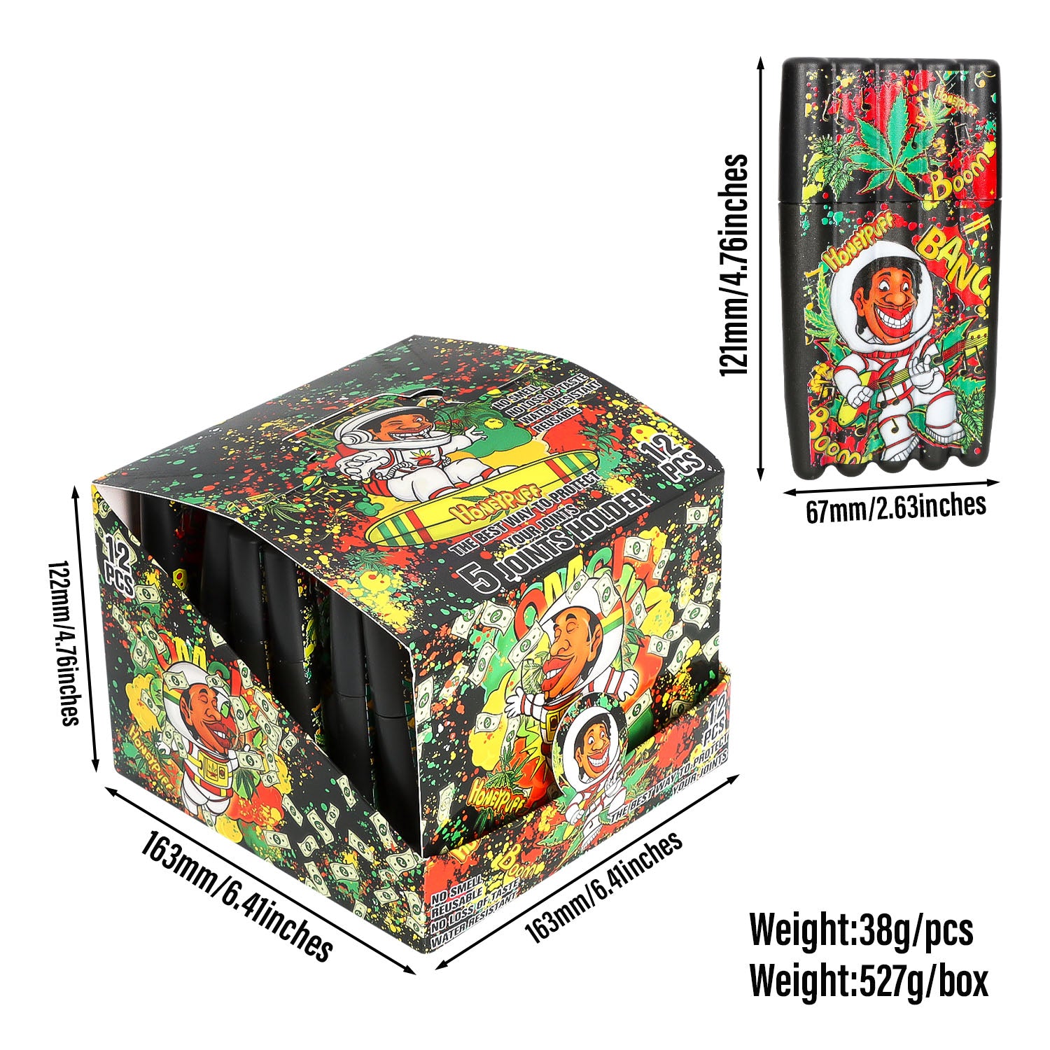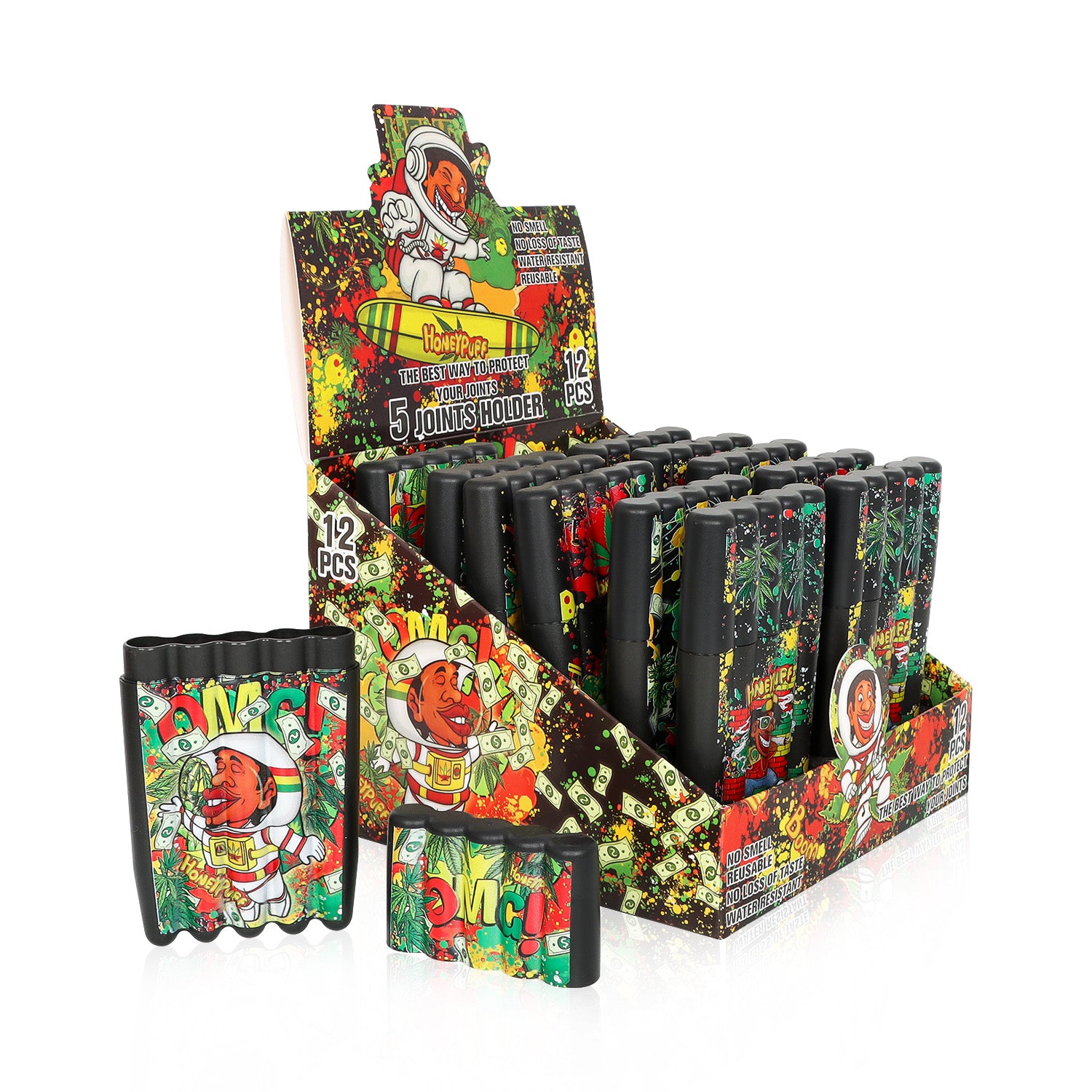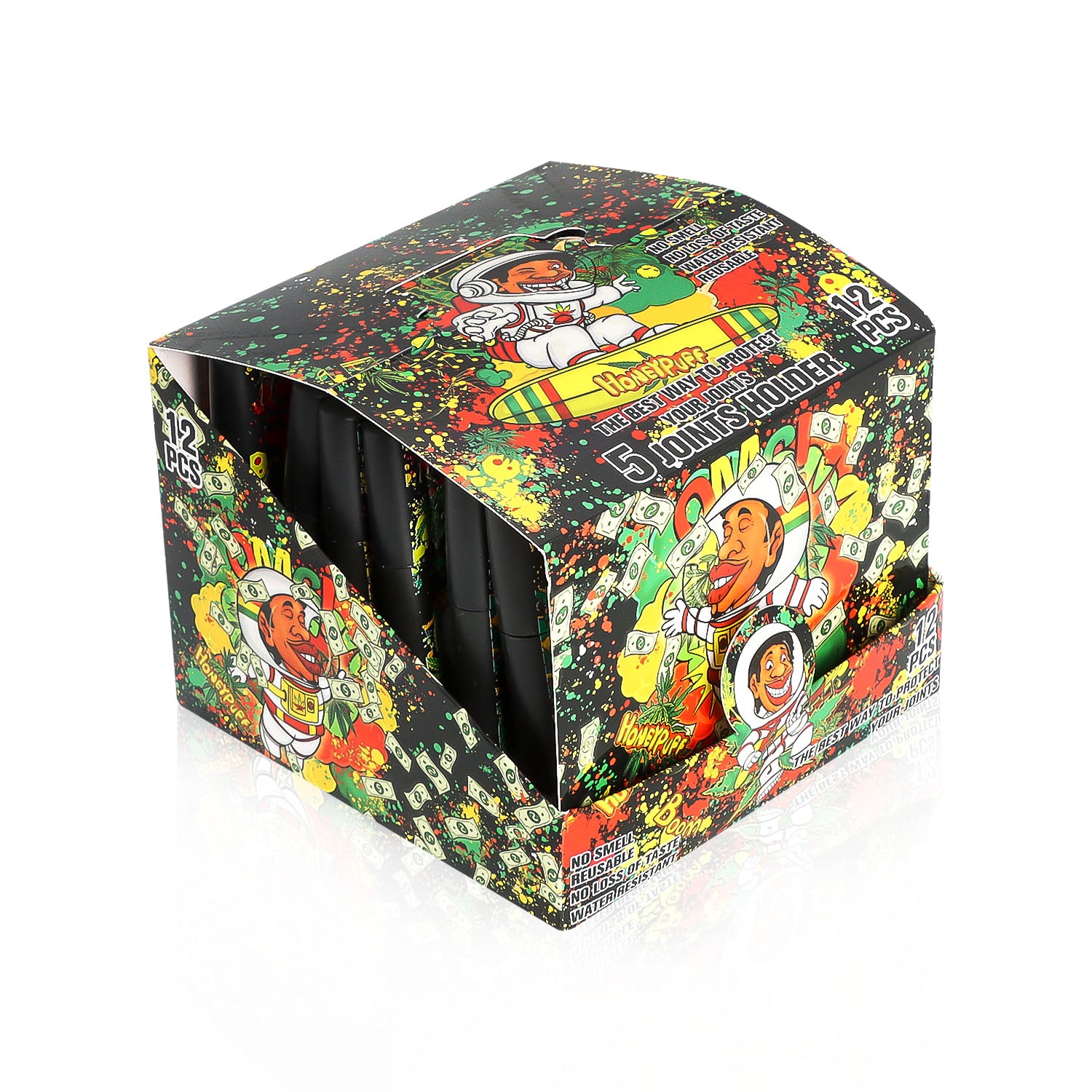 HONEYPUFF 5 Joint Holder, Smell Proof Pre Roll Cone Holder Case, 121 mm Black Joint Case, 12 PCS / Box