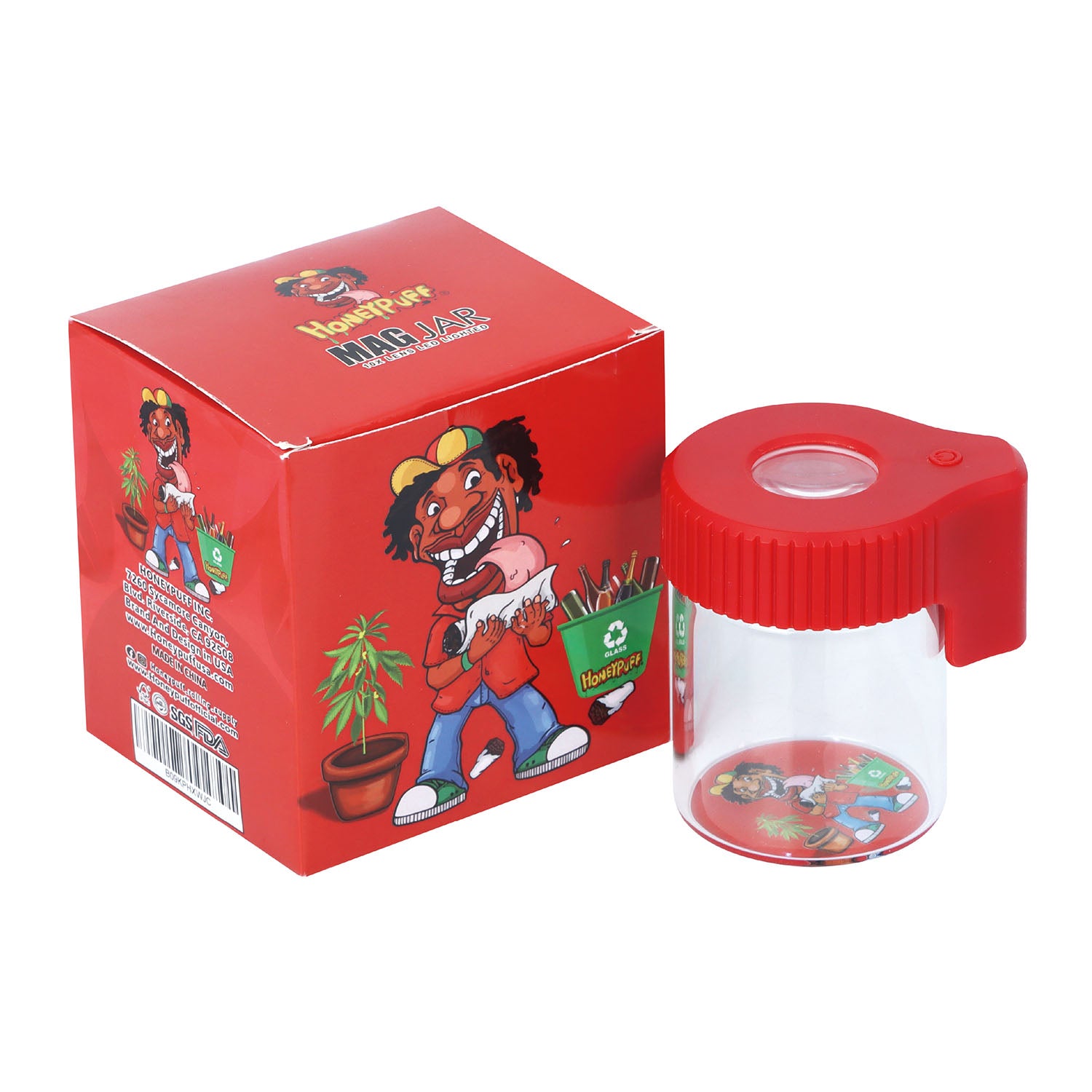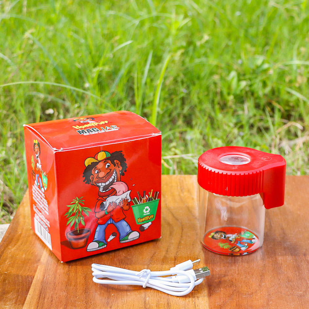 HONEYPUFF Light-Up Led Storage Jar, Air Tight & Magnifying View Jar, Red Color Jar Lid, Rechargeable Glass Jar Container 155 ml