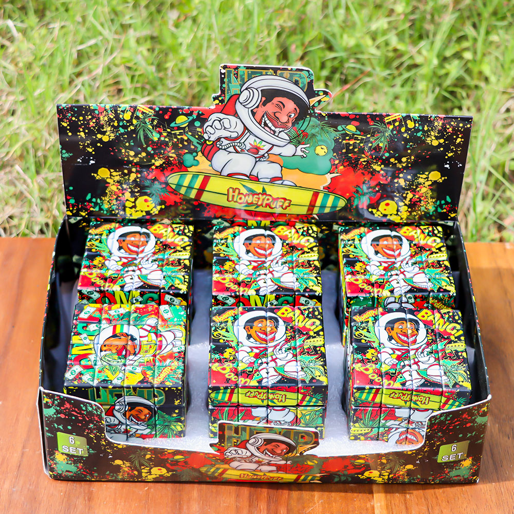 HONEYPUFF Cube Shape Plastic Smoker Grinder, 58 mm 4 Lay Herb Grinder, 6 PCS / Box