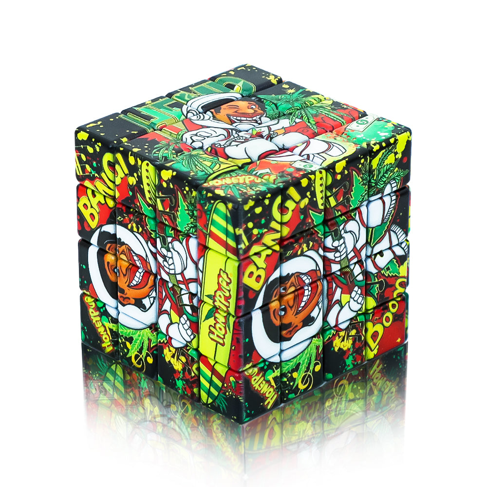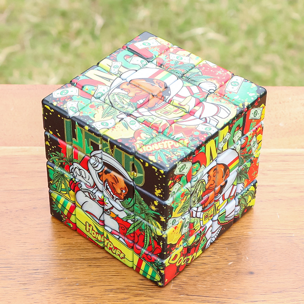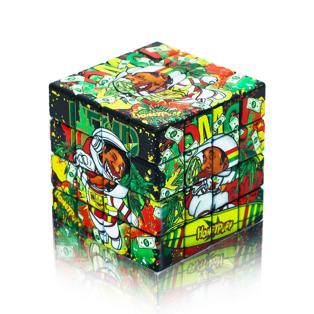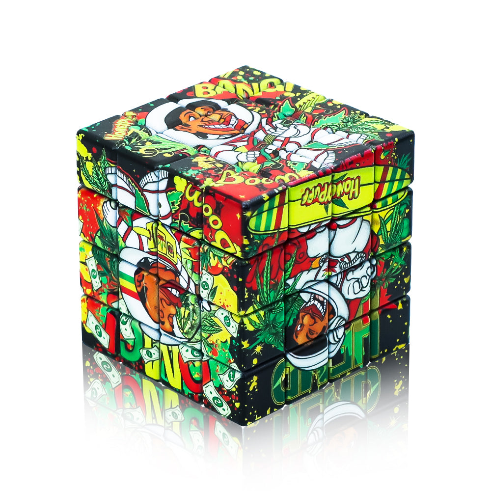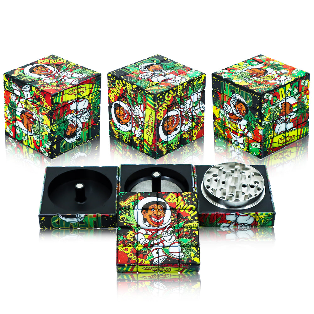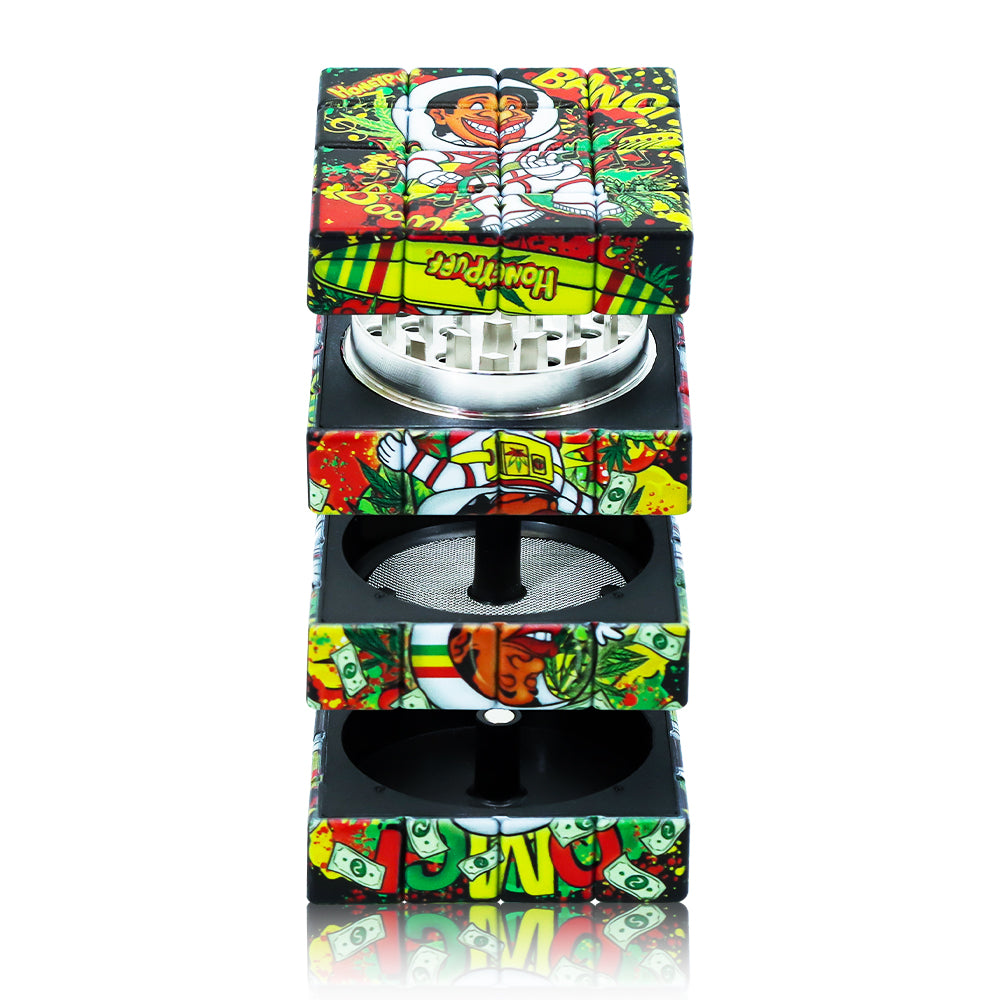 - [Magic cube design]: This plastic magic cube shape herb grinder is interesting. The spice grinder have 4 lays, all of them is contact with a set of strong magnet. The cube herb grinder each piece can revolve flexible, just like play magic cube.