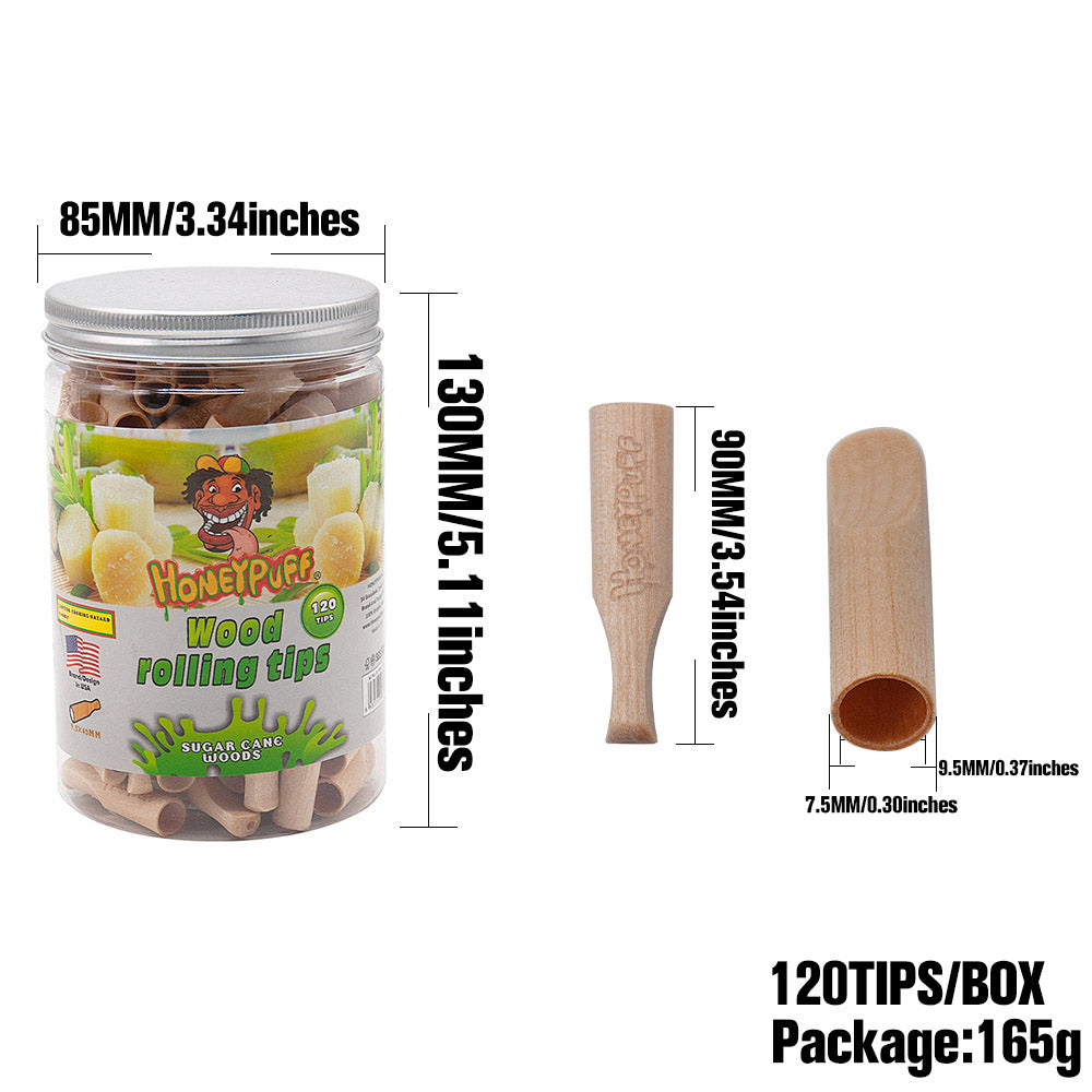 HONEYPUFF Sugarcane Flavored Wood Rolling Filter Tips, 40 mm Cigarette Holder, 120 Tips / Jar