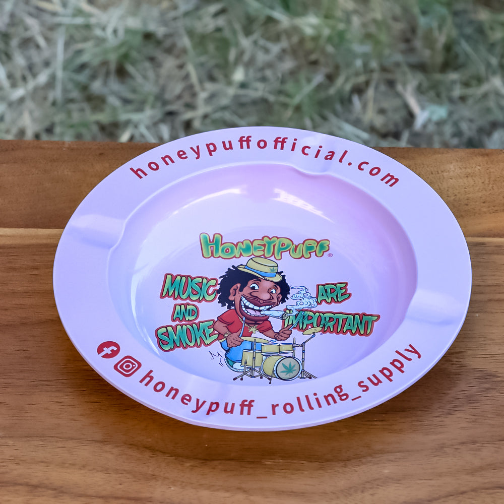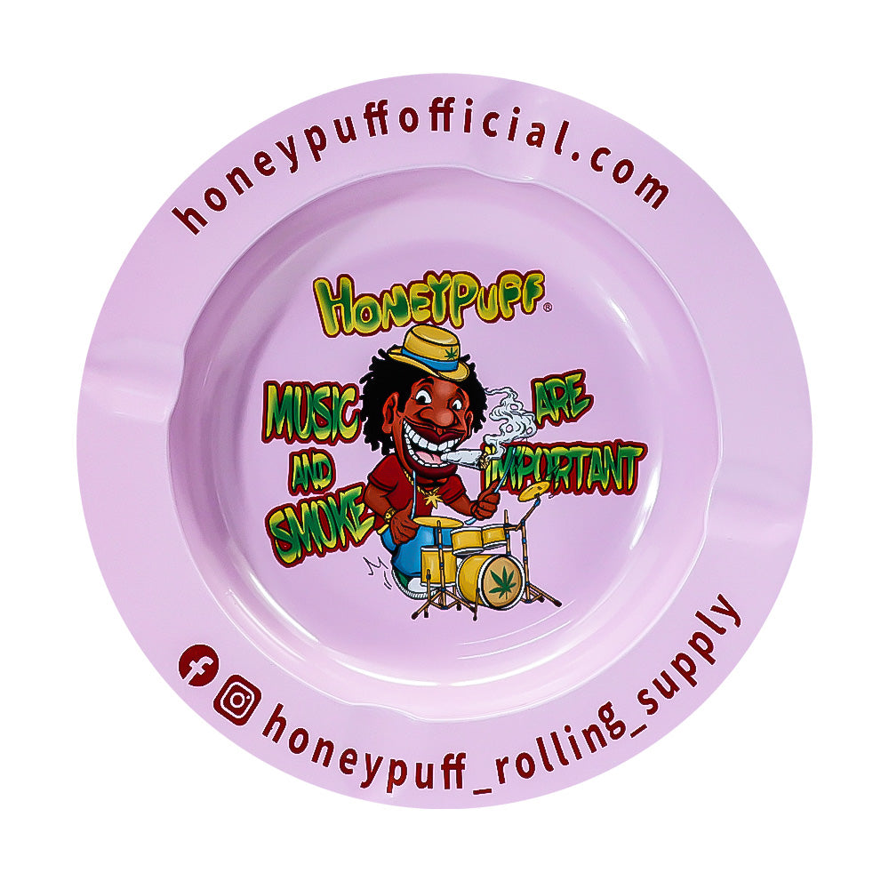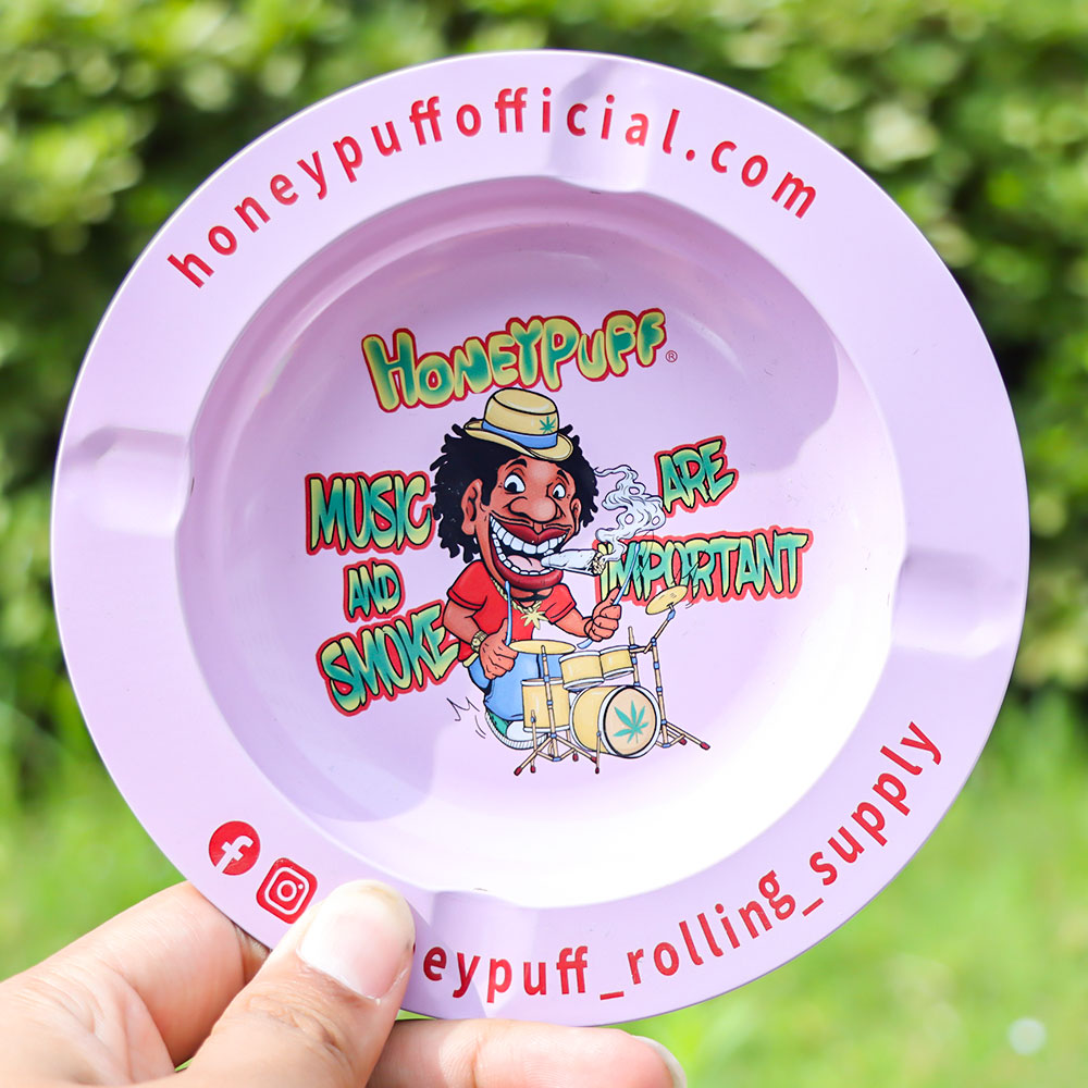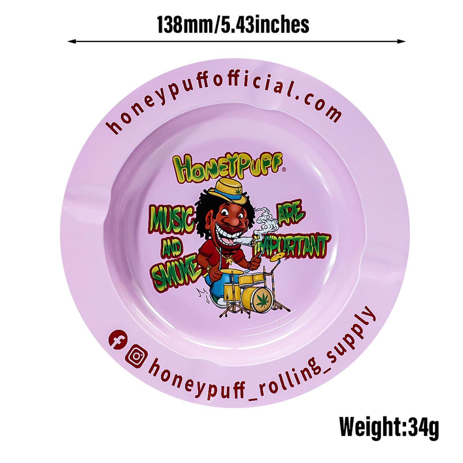 - [Easy clean]: The Honey Puff tinplate ashtray have a smooth rounded edge that will no hurt people. This metal ash tray allows it to cleaned in the dishwasher, whether by hand or machine wash is only a small amount of soap and water can be easily washed off. Rinse under the tap, and dry it with a cloth.