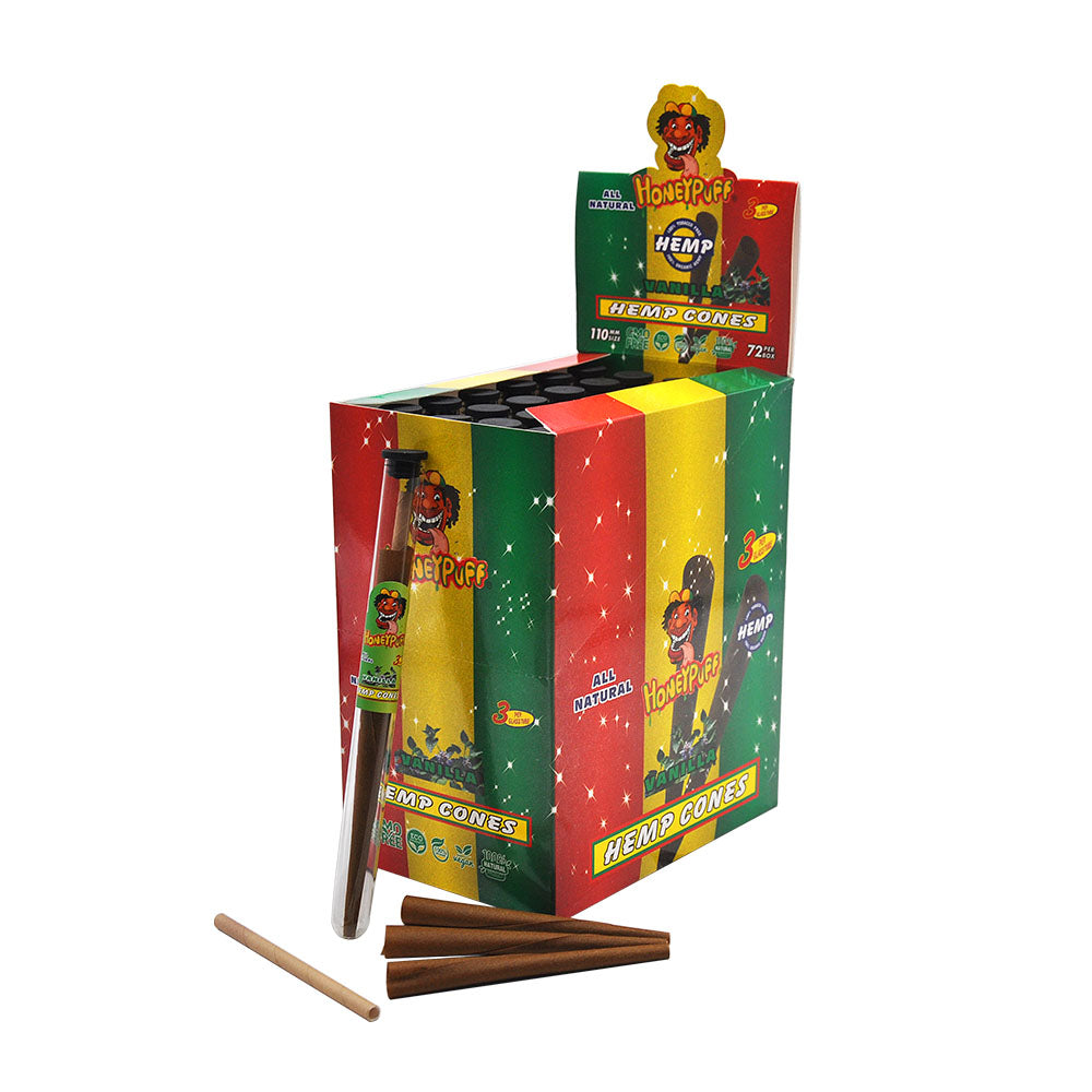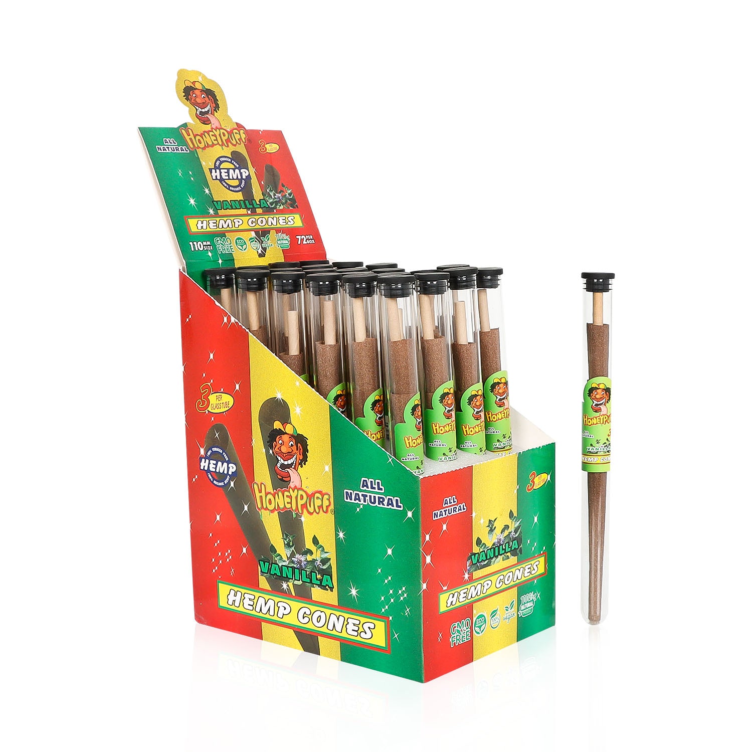 HONEYPUFF Vanilla Flavors Pre Rolled Cones with Tips, King Size Pre Rolled Rolling Paper, Natural Rolling Papers & Glass Cigarette Holder, 3Cone/Tube 24Tubes/Box