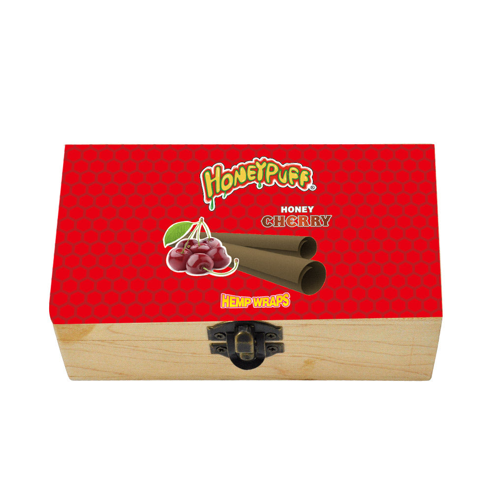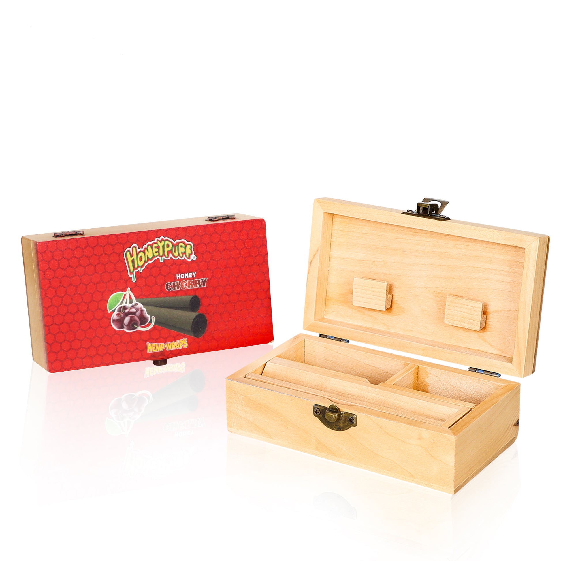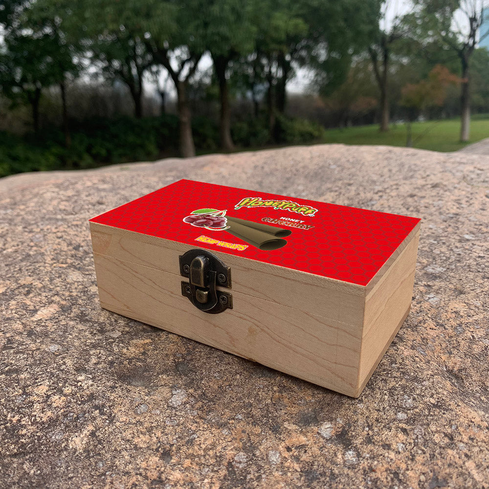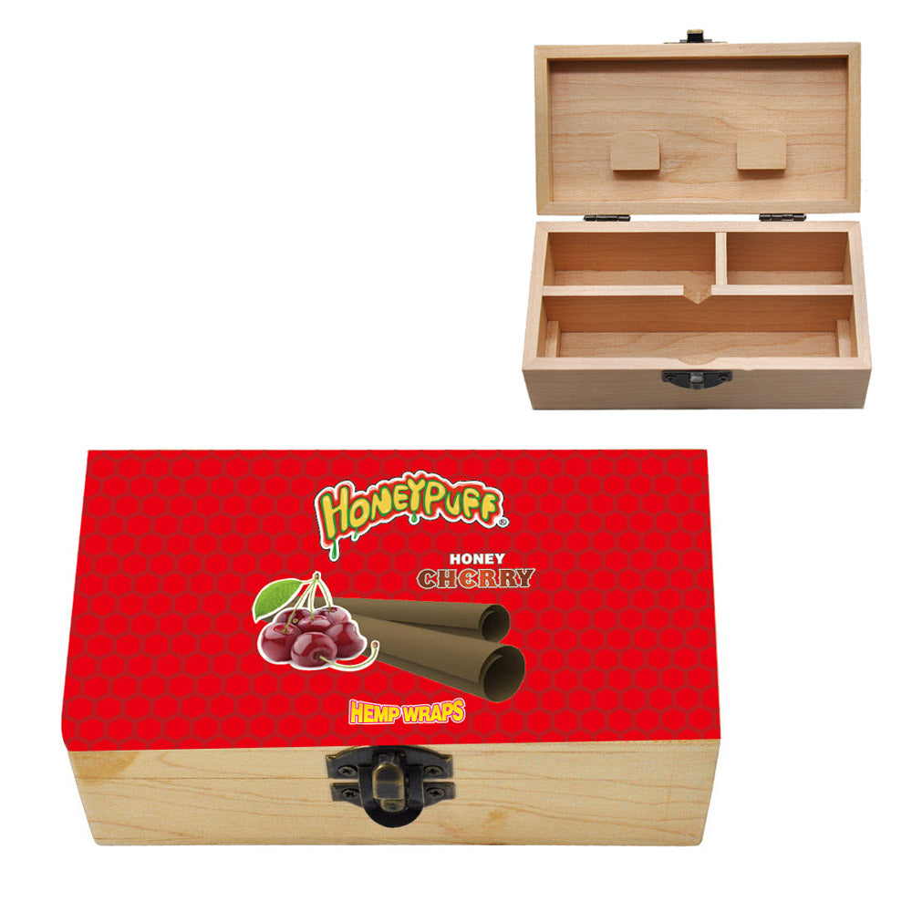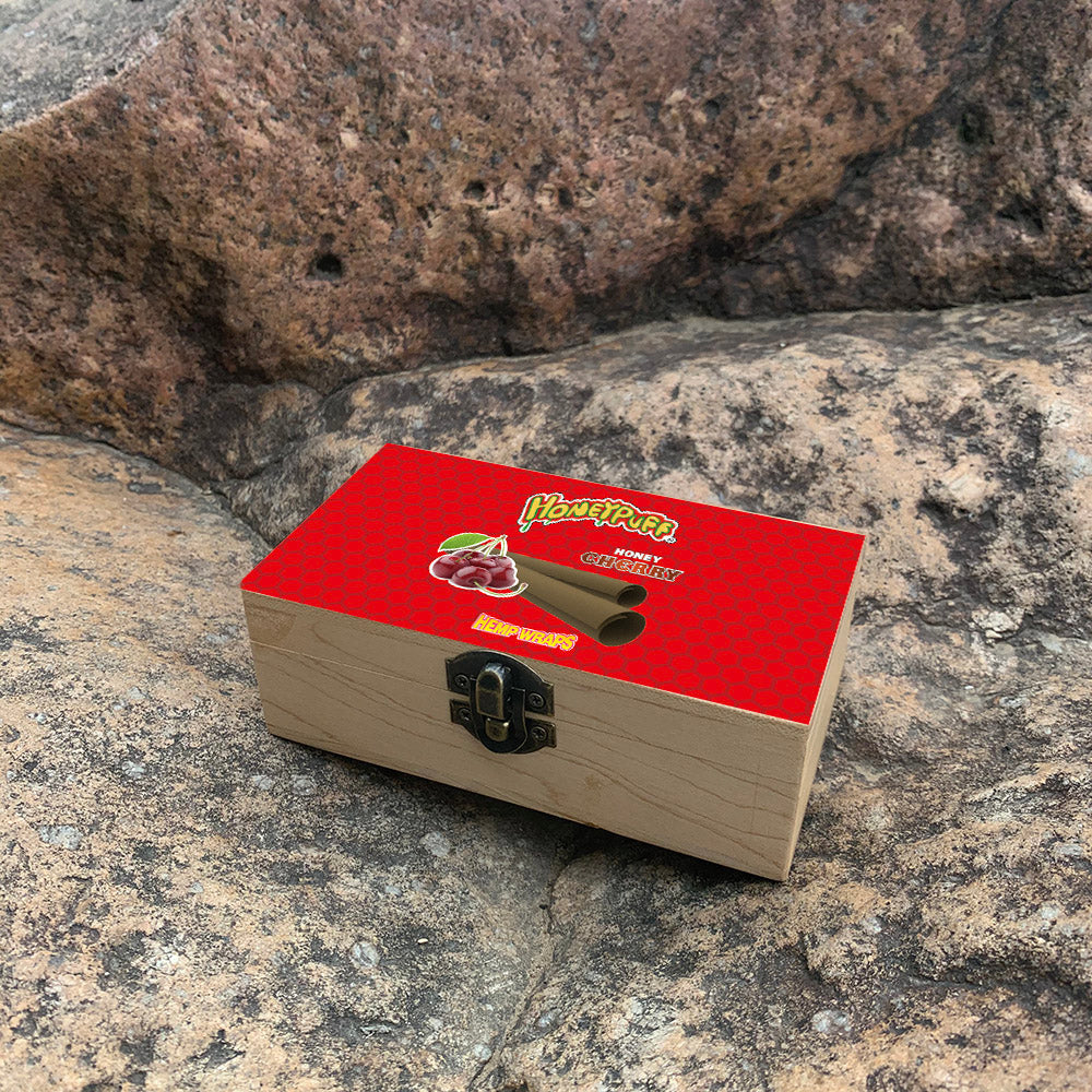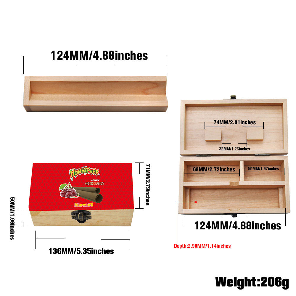 HONEYPUFF Handmade Tobacco Smoking Herb with Red Lid Cover, Lockable Wooden Box, 5.4” x 2.8” x 2.0” Size Storage Box