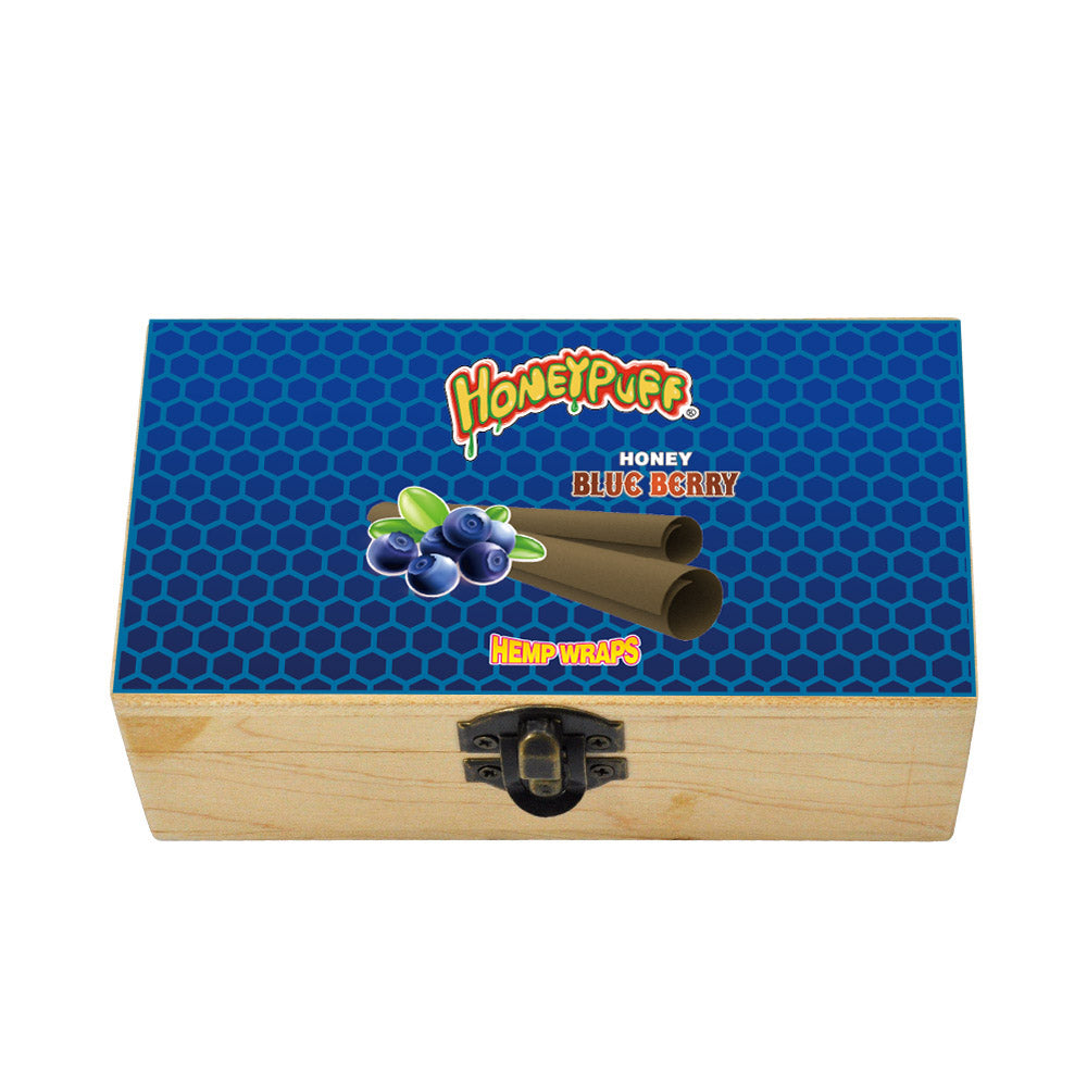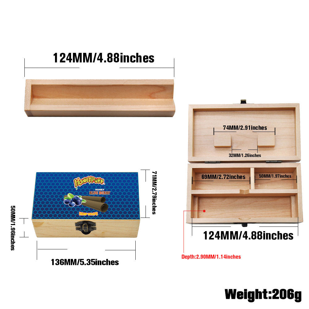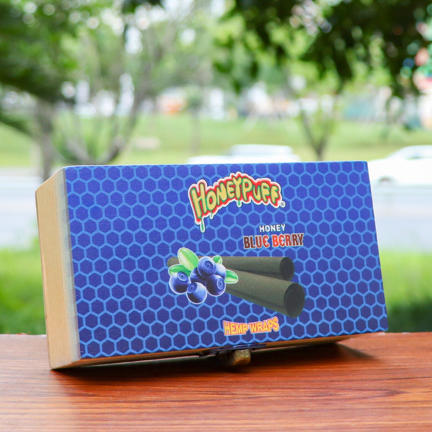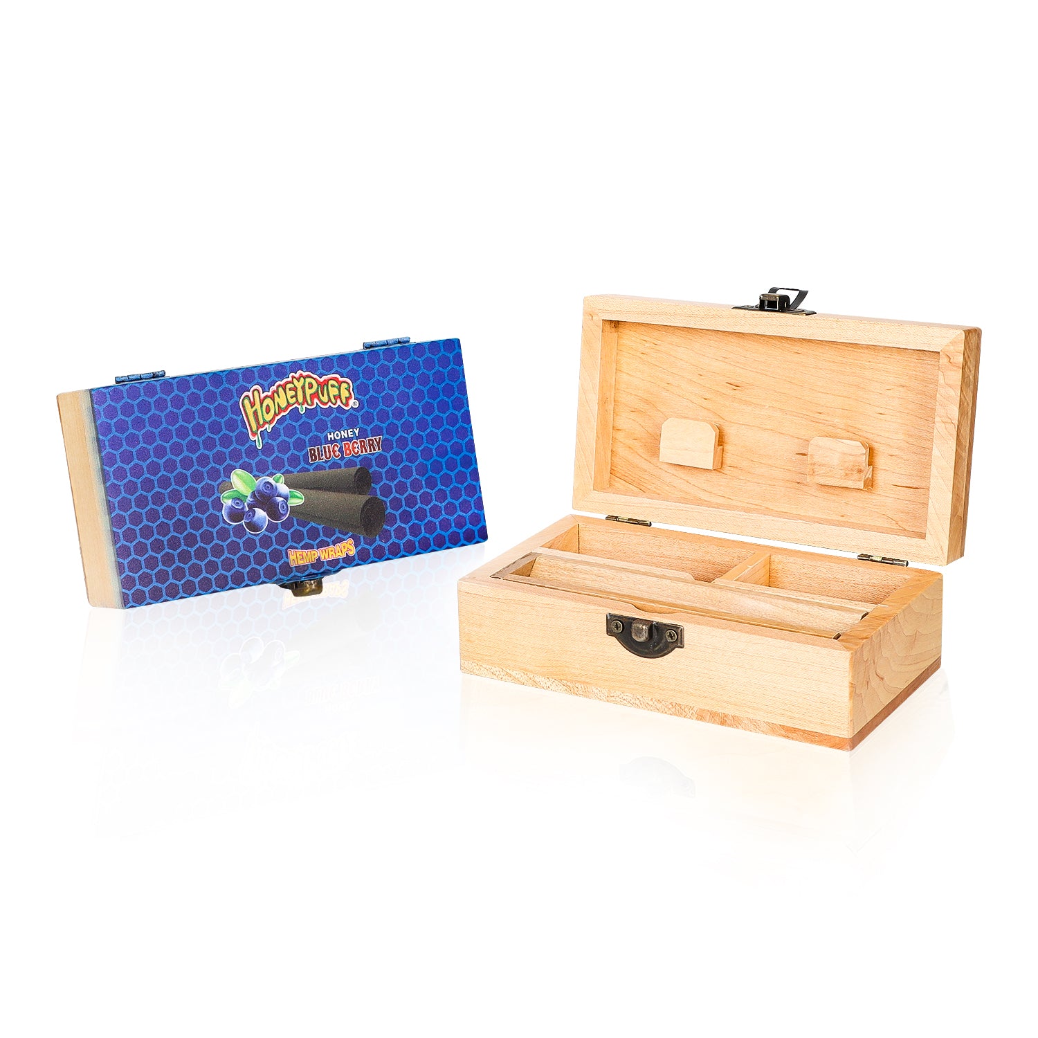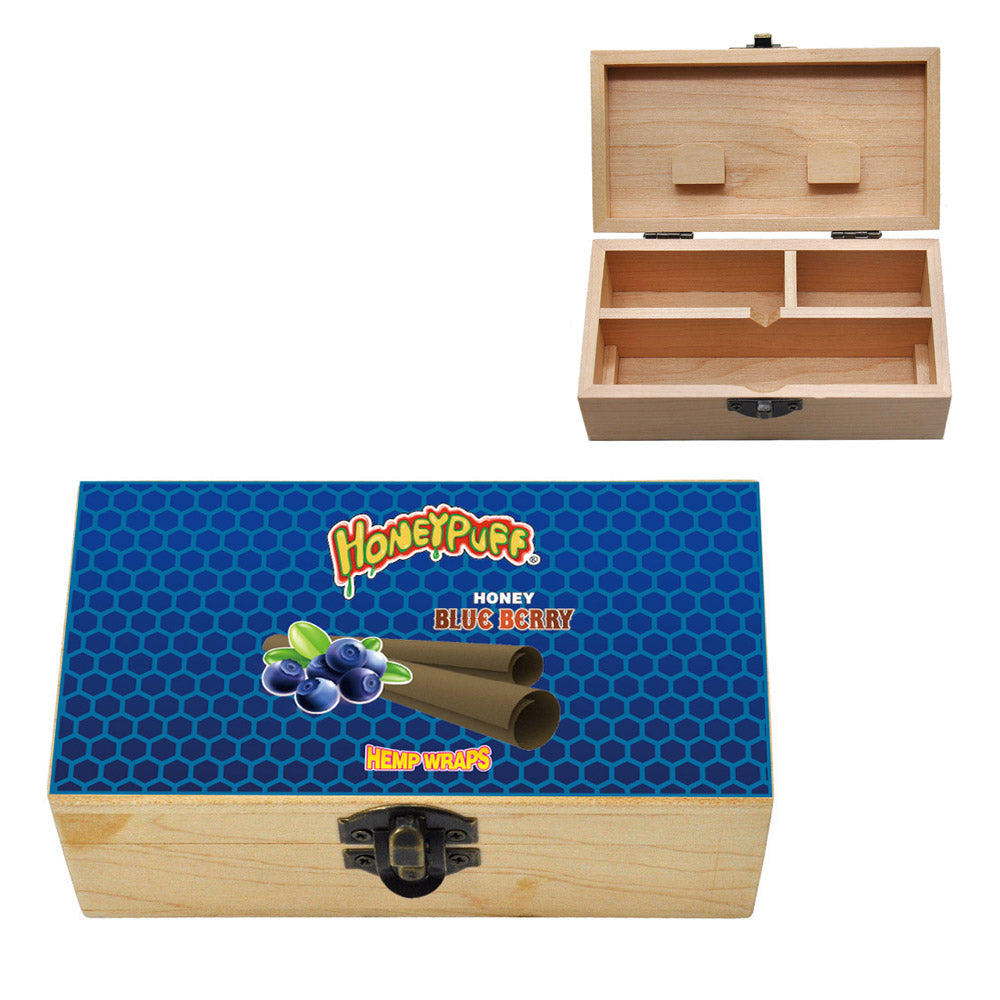 HONEYPUFF Handmade Tobacco Smoking Herb with Dark Blue Lid Cover, Lockable Wooden Box, 5.4” x 2.8” x 2.0” Size Storage Box